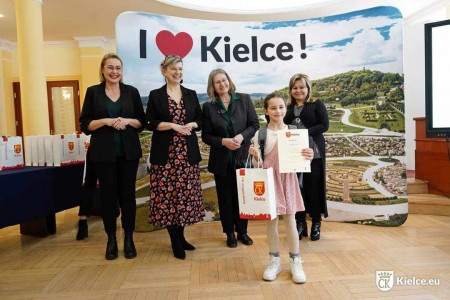 Kielce - Moje Miasto w 2024 roku to temat konkursu, którego organizatorem było Biuro Promocji i Współpracy z Zagranicą w Wydziale Przedsiębiorczości i Komunikacji Społecznej kieleckiego ratusza. W poniedziałek, 4 marca ponad 450 prac oceniło jury i wyłoniło laureatów, a wśród nich dwie uczennice z naszej szkoły: Emilię Kustrę z klasy 2b oraz Klaudię Janusz z klasy 4a. Uroczysty finał konkursu, połączony z wręczeniem nagród laureatom, odbył się w piątek, 15 marca, o godz. 13:00 w Urzędzie Stanu Cywilnego UM Kielce.