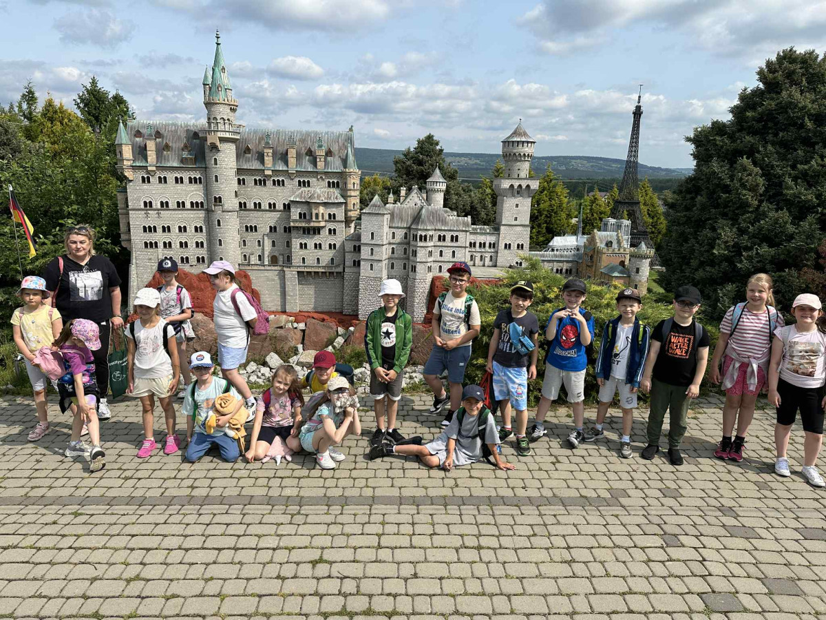 Miło nam poinformować, że klasa 1c zdobyła II miejsce w Plebiscycie Echa Dnia Pierwszaki 2024/2025! To wyjątkowe wyróżnienie, przyznane w konkursie organizowanym przez Echo Dnia, jest dowodem na ogromne wsparcie dla uczniów przez rodziców. Choć droga do sukcesu nie zawsze jest łatwa, uczniowie udowodniają, że dzięki determinacji, współpracy i pozytywnej energii można osiągnąć wspaniałe rezultaty. W nagrodę uczniowie mieli okazję odwiedzić Park Rozrywki i Miniatur – Sabat Krajno, gdzie wspólnie spędzili pełen atrakcji dzień. Podczas zwiedzania Alei Miniatur uczniowie mieli niepowtarzalną okazję zobaczyć pomniejszone modele najsłynniejszych budowli świata. Szczególną atrakcją była imponująca Bazylika św. Piotra, a także unikatowe miniatury nieistniejących już wież World Trade Center. Uczniowie mogli podziwiać m.in.. Wieżę Eiffla, Piramidy Egipskie, Wielki Mur Chiński, Statuę Wolności czy Koloseum, odbywając niezwykłą podróż przez historię i architekturę różnych kultur. Dzięki tej wycieczce uczniowie nie tylko świetnie się bawili, ale także wzbogacili swoją wiedzę o zabytkach świata. Serdeczne gratulacje dla klasy 1c! Niech ten sukces będzie motywacją do dalszego rozwijania swoich talentów i budowania silnej, przyjaznej społeczności. Życzymy kolejnych osiągnięć i niezapomnianych szkolnych przygód!