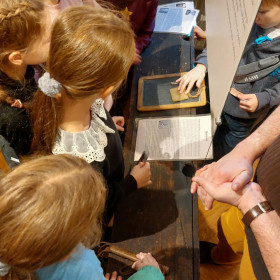 Dnia 13 listopada klasa 3b udała się do Muzeum Historii Kielc. Stare, drewniane ławki, elementarze, kalamarze, liczyła i szkolne tornistry opowiedziały historię dawnych uczniów z Kielc i regionu. Na wystawie "W szkolnej ławie" można było zobaczyć jak wyglądała nauka pięćdziesiąt, sto, a nawet trzysta lat temu. To była niezwykła opowieść o szkole wczoraj i dziś - o nauczycielach, uczniach i codziennym życiu szkolnym w Kielcach.