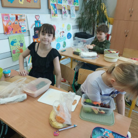 Uczniowie klasy 3a w ostatnim czasie poznawali zasady zdrowego odżywiania, ze szczególnym uwzględnieniem zdrowych przekąsek.