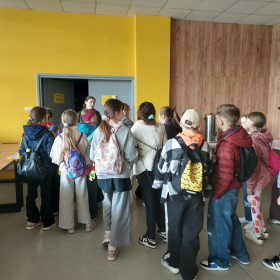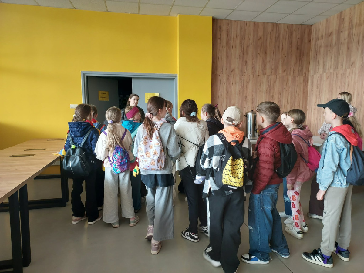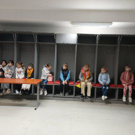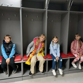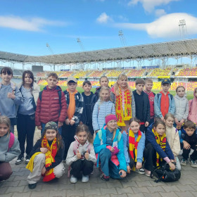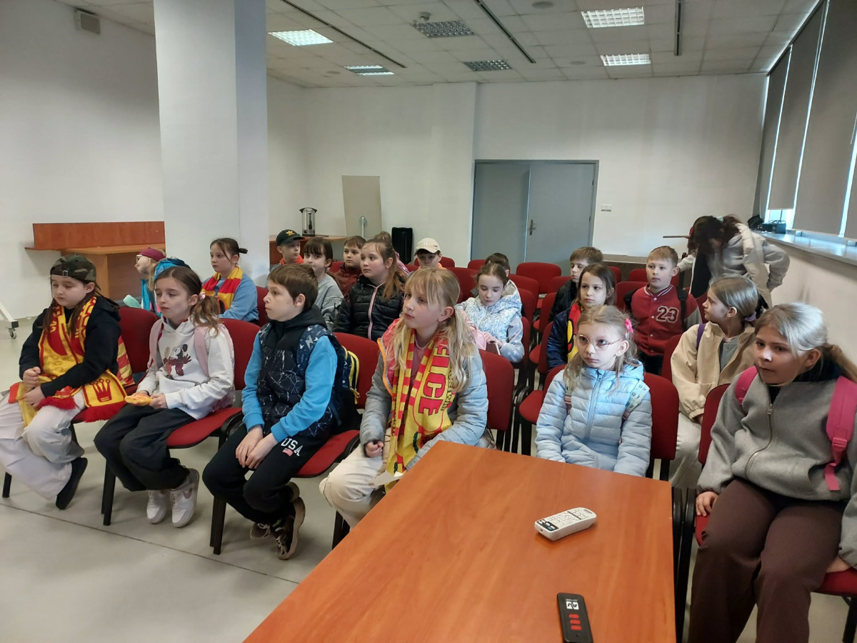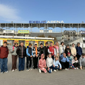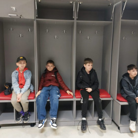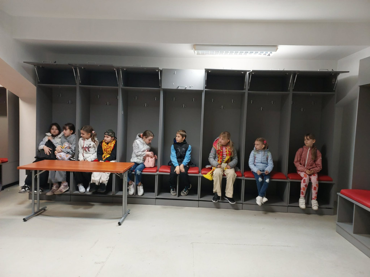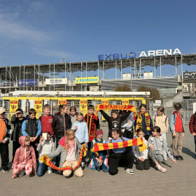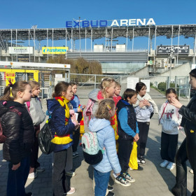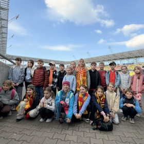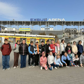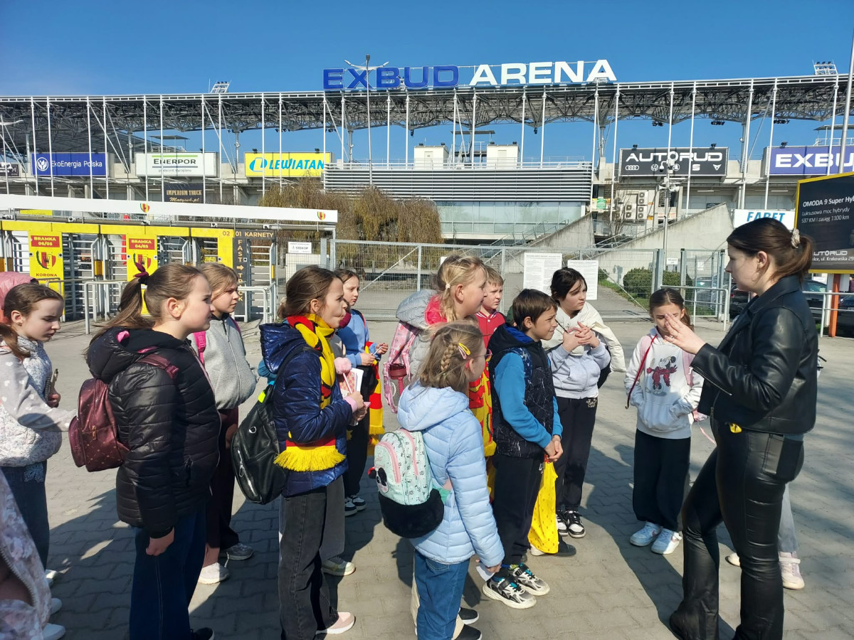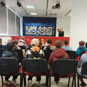 Pierwszym punktem programu był przejazd autobusem miejskim na stadion, gdzie uczniowie uczestniczyli w jego zwiedzaniu. Podczas wizyty zapoznali się z funkcjonowaniem obiektu, poznali zasady przygotowania meczów, organizację pracy drużyny oraz kulisy konferencji prasowych. Była to niezwykle ciekawa lekcja pokazująca, jak wygląda zaplecze wydarzeń sportowych „od kuchni”.