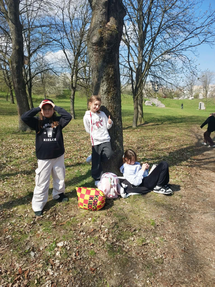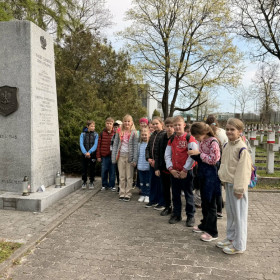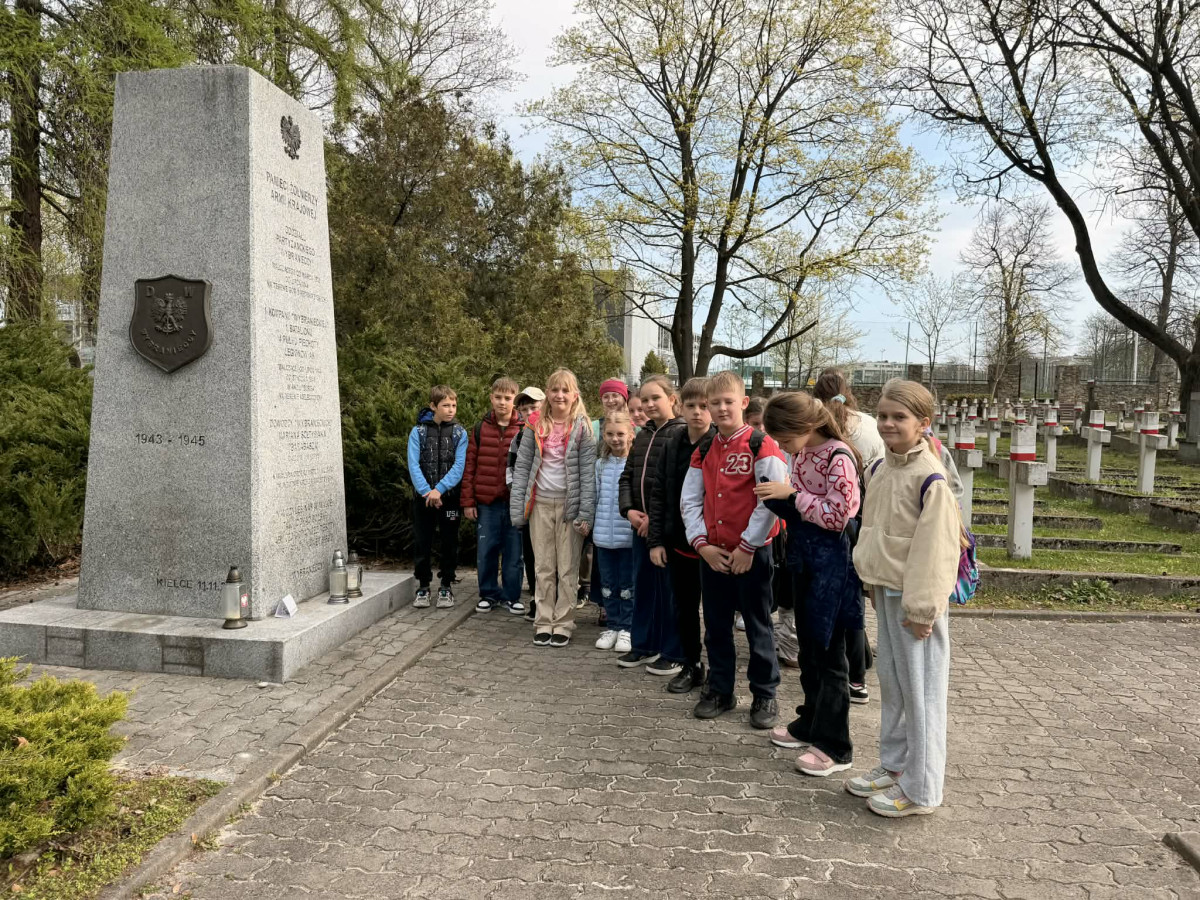 Następnie uczniowie udali się na spacer na Cmentarz Stary w Kielcach, gdzie odwiedzili ważne miejsca pamięci narodowej, m.in. pomnik Stefana Artwińskiego, Pomnik Poległych w II Wojnie Światowej, pomnik bohatera Majora Henryka Dobrzańskiego „Hubala”, a także Mariana Sołtysiaka „Barabasza” oraz Pomnik Katyński. Była to chwila refleksji i zadumy nad historią oraz bohaterstwem minionych pokoleń.