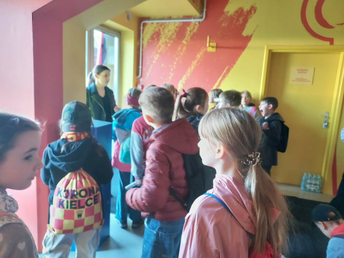 Uczniowie wzięli udział w wyjątkowej wycieczce edukacyjnej, podczas której mieli okazję poznać zarówno sportowe, jak i historyczne oblicze Stadionu Korony Kielce oraz miasta Kielce.