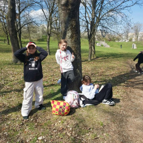 Kolejnym etapem wycieczki było przejście na Rezerwat przyrody Kadzielnia, gdzie na uczniów czekał piknik pod chmurką. W miłej atmosferze odbyły się również zabawy integracyjne na świeżym powietrzu, sprzyjające budowaniu relacji i wspólnemu spędzaniu czasu.