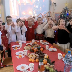 Na ten wyjątkowy wigilijny wieczór klasa 1a zaprezentowała świąteczne przesłanie.