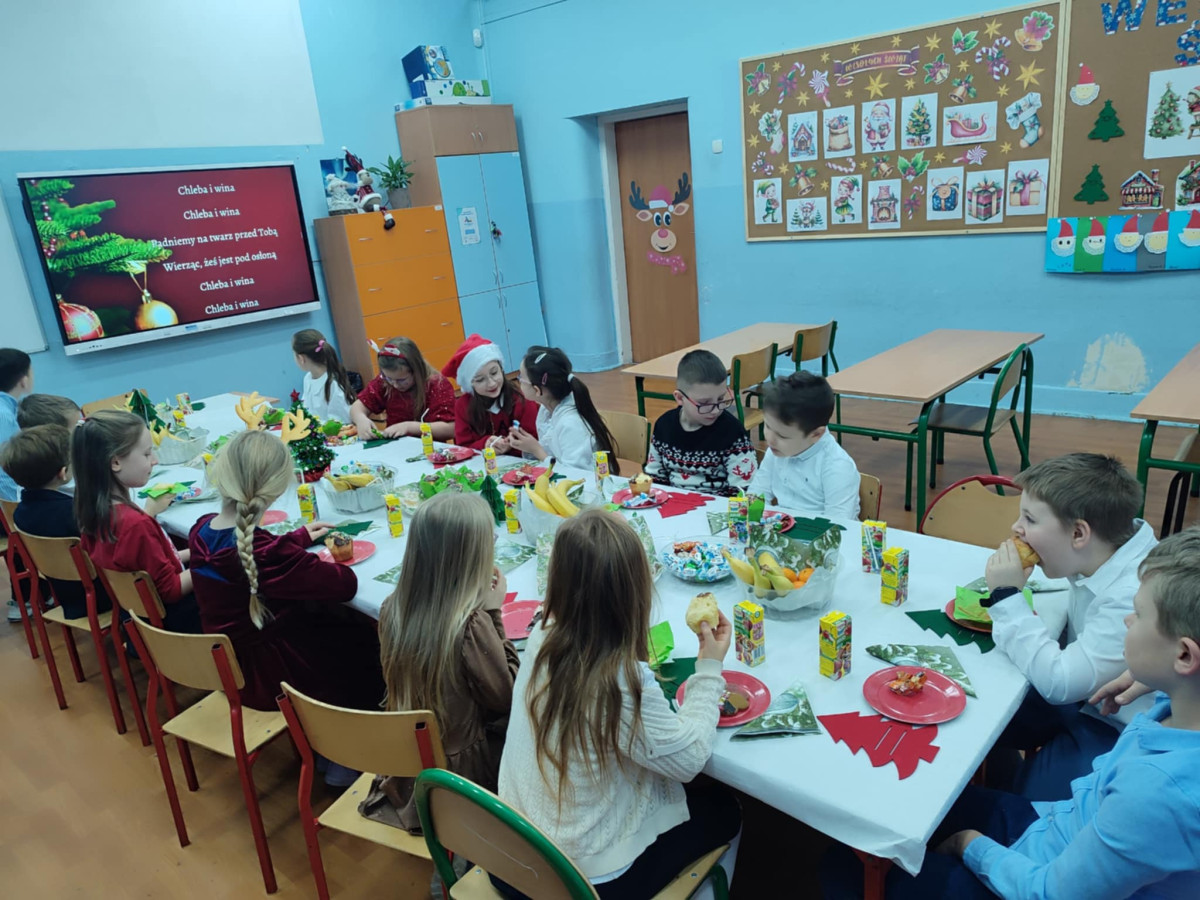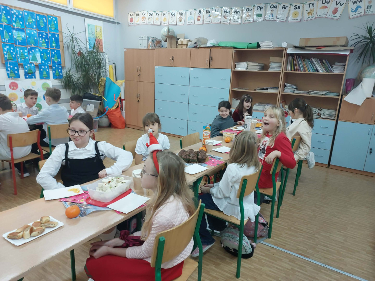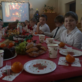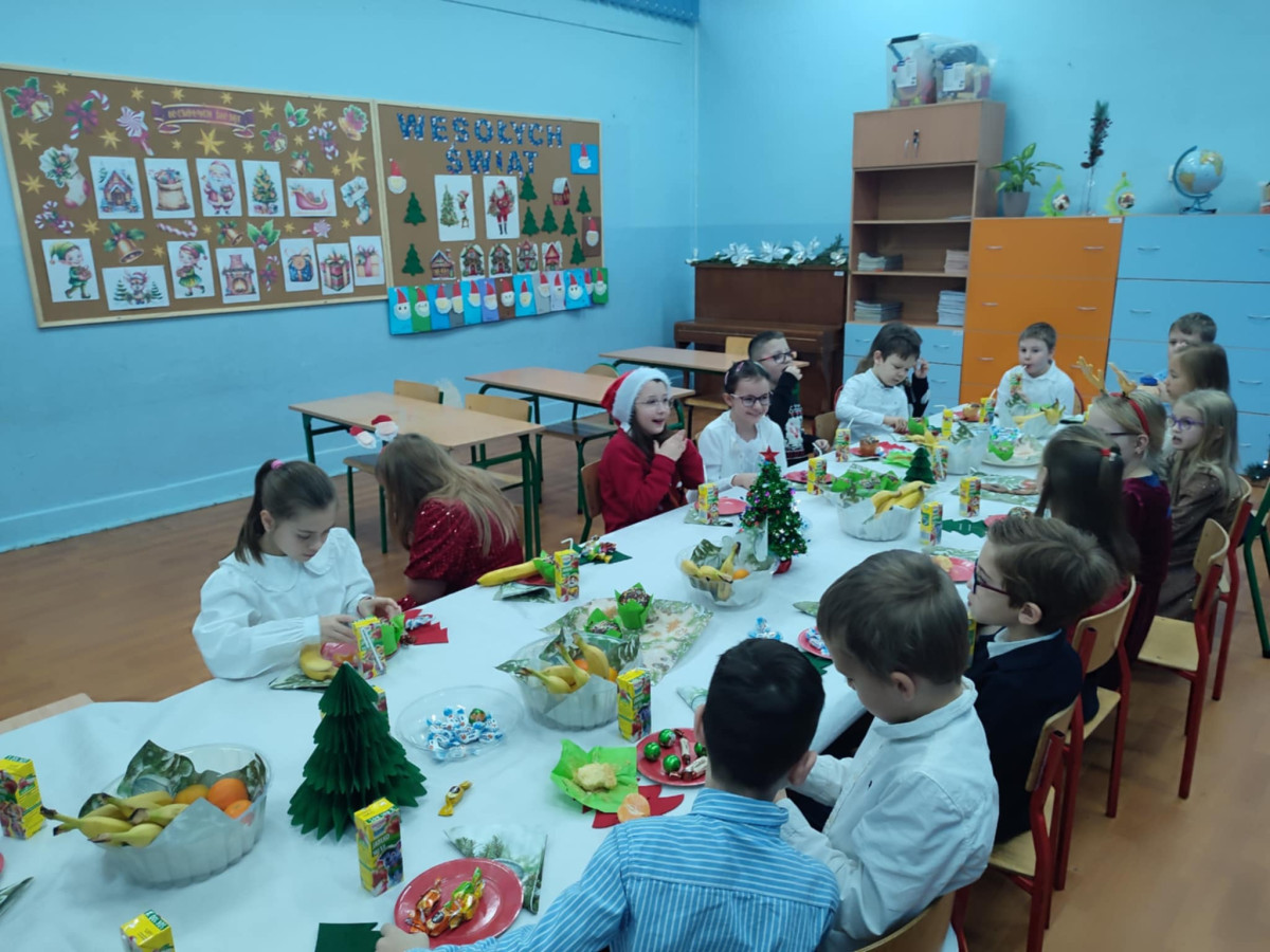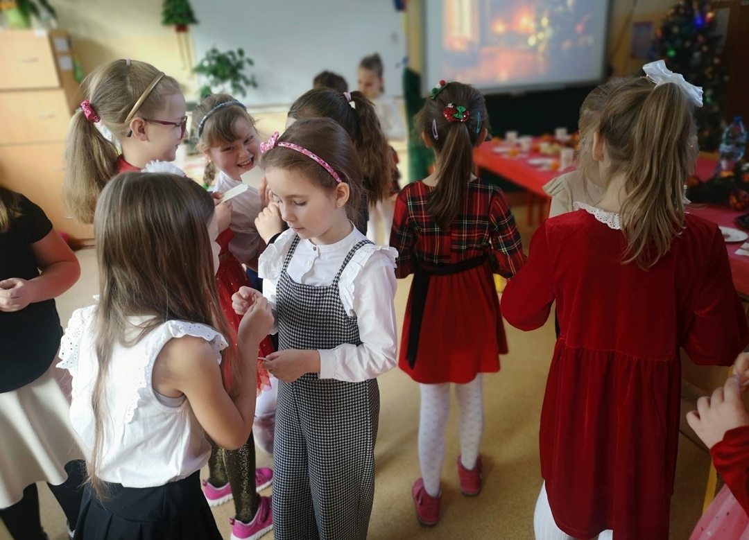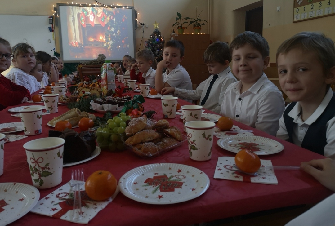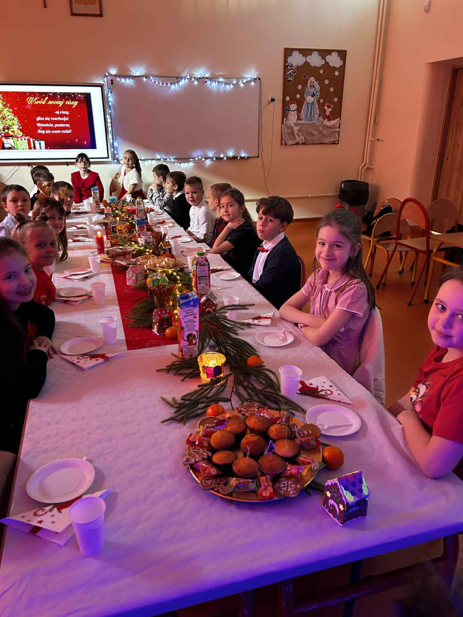 Przy cichych dźwiękach kolędy, w świątecznych nastrojach, uczniowie klas 0-3 spotkali się by złożyć sobie życzenia.