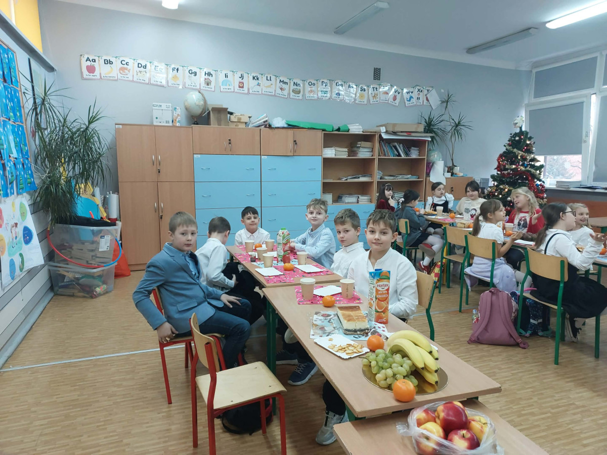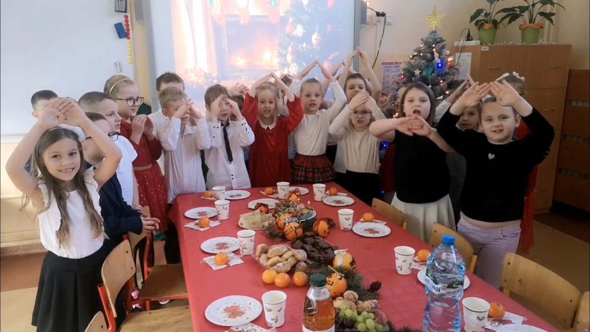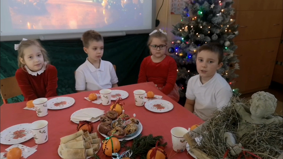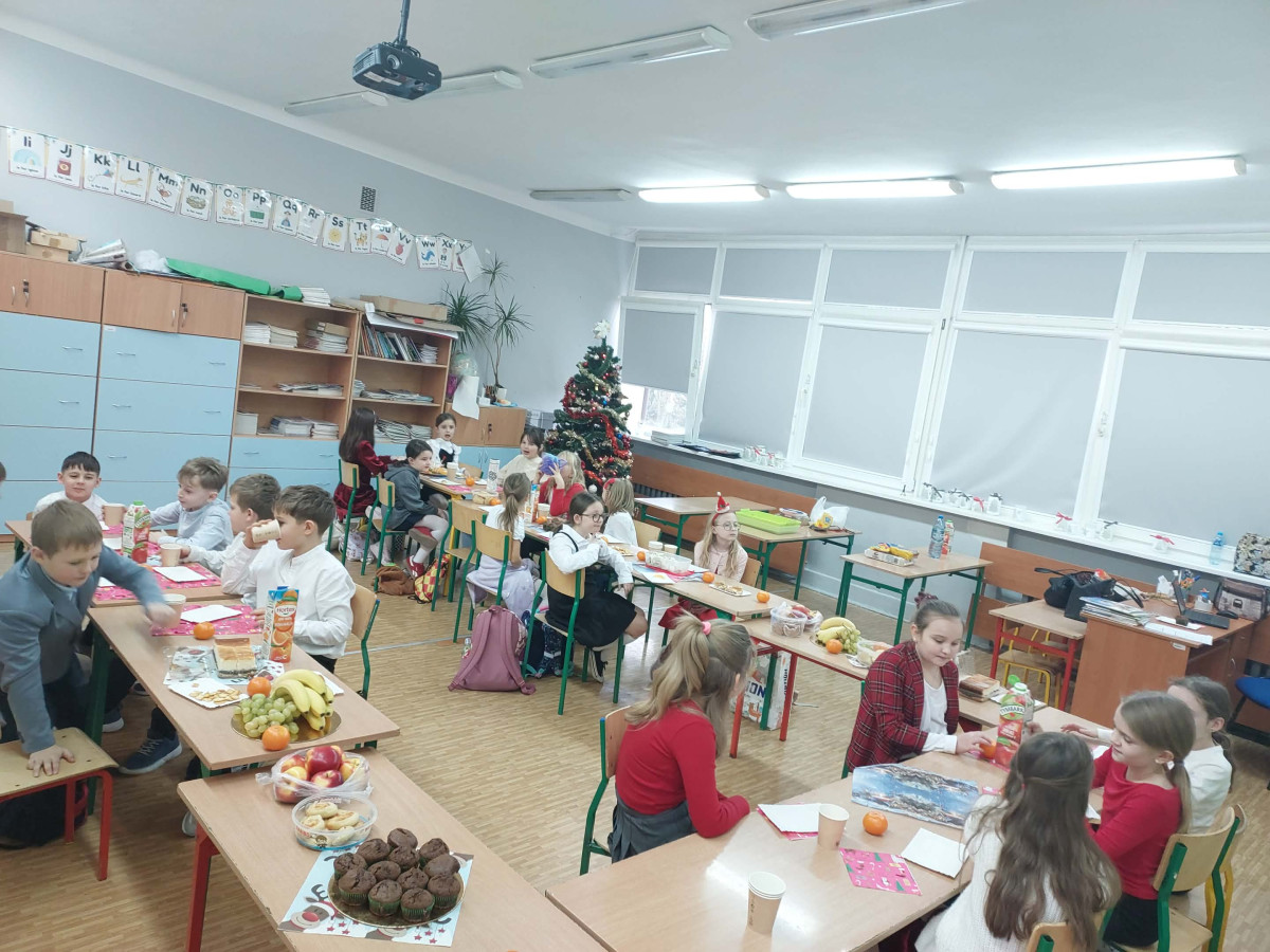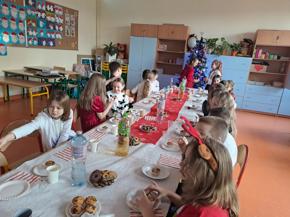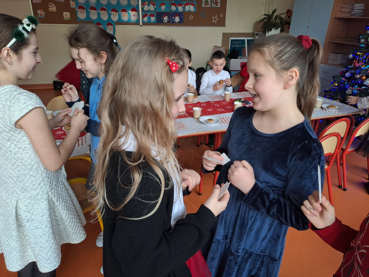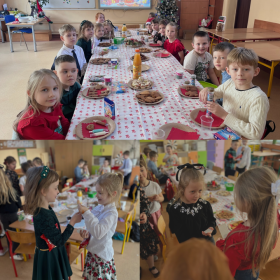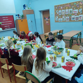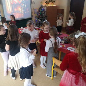 Przy cichych dźwiękach kolędy, w świątecznych nastrojach, uczniowie klas 0-3 spotkali się by złożyć sobie życzenia.