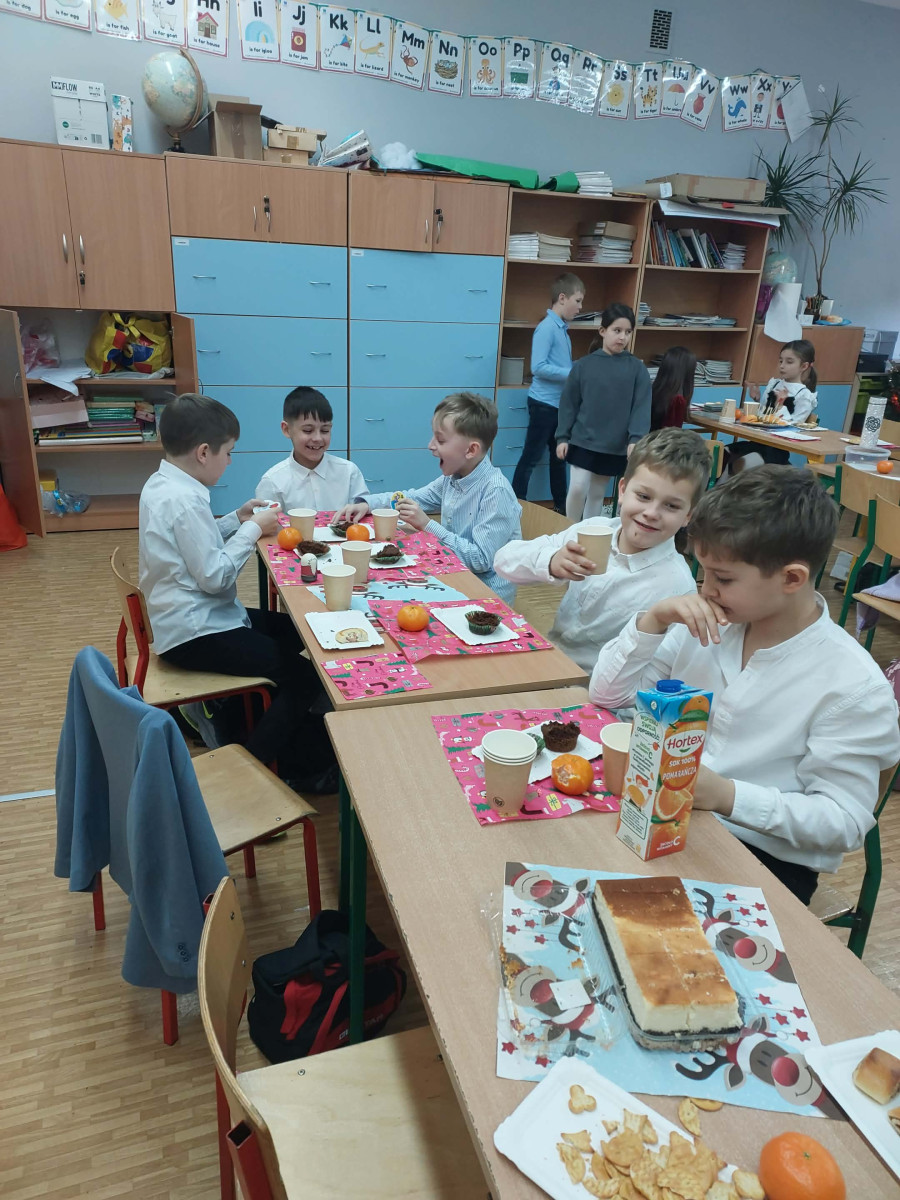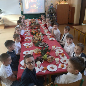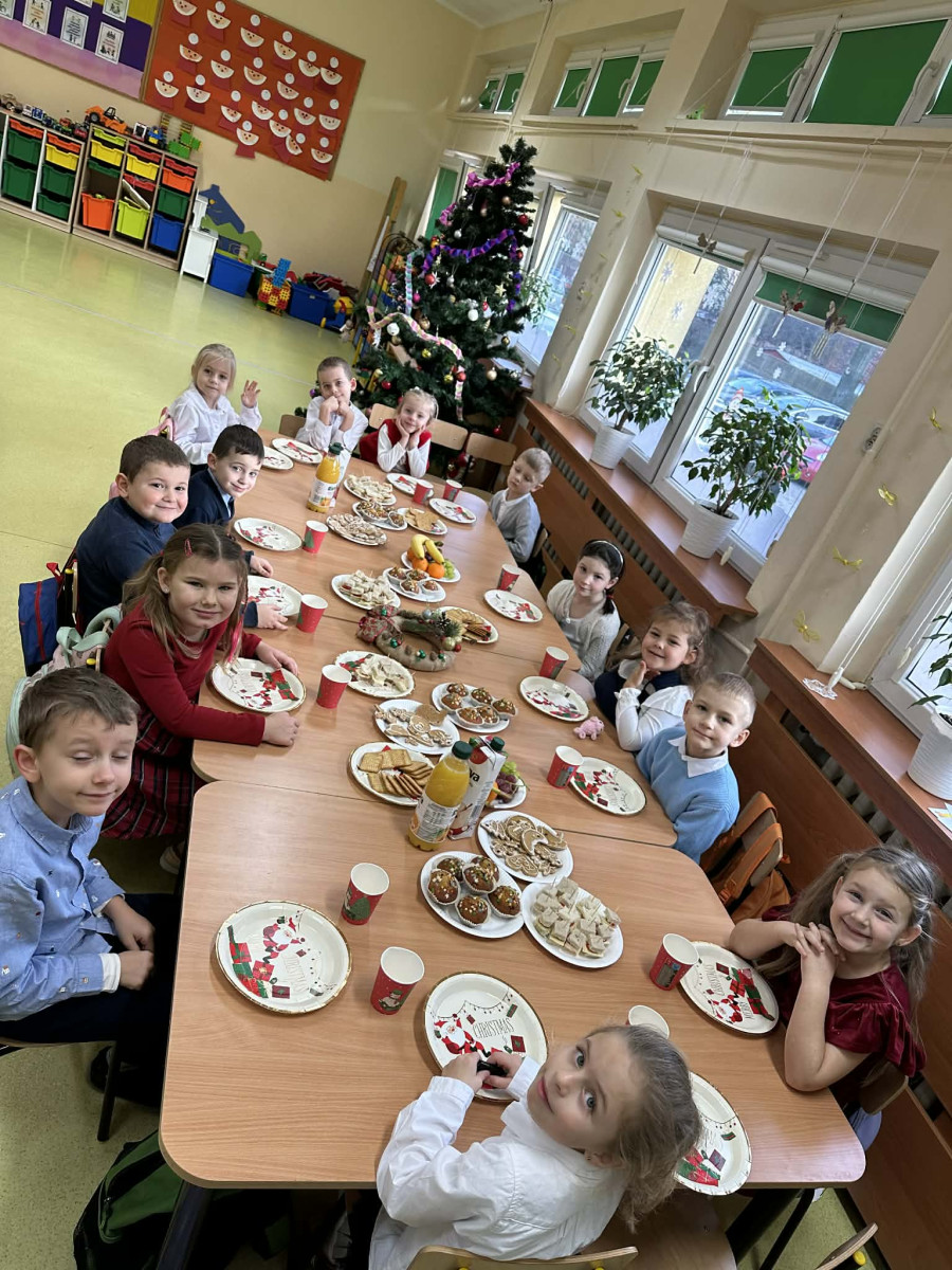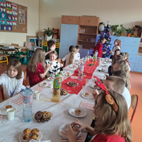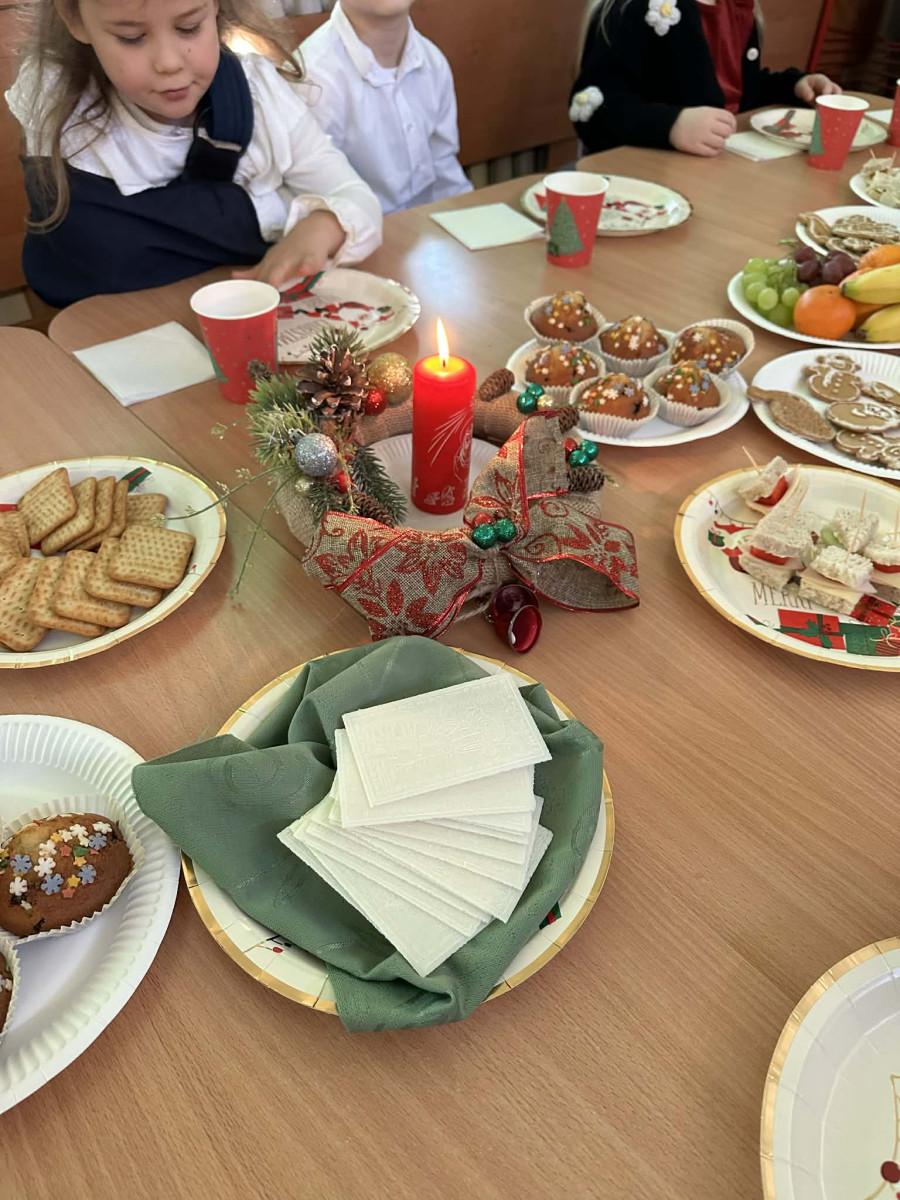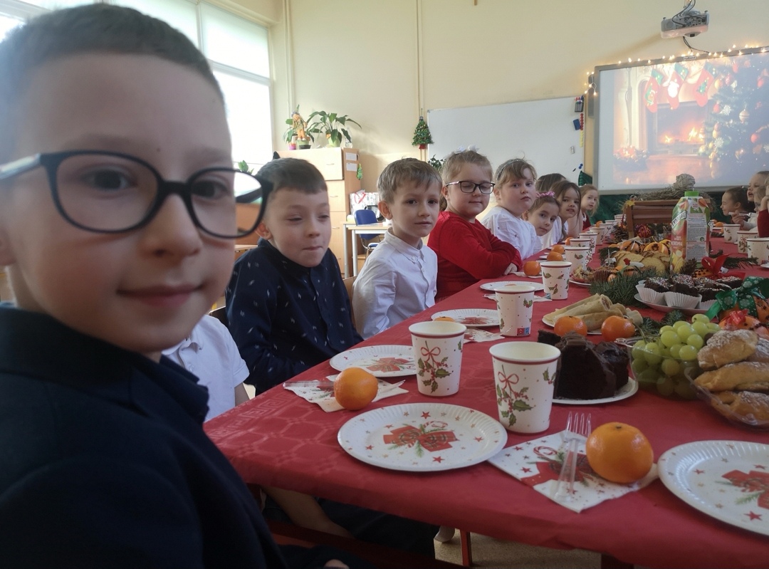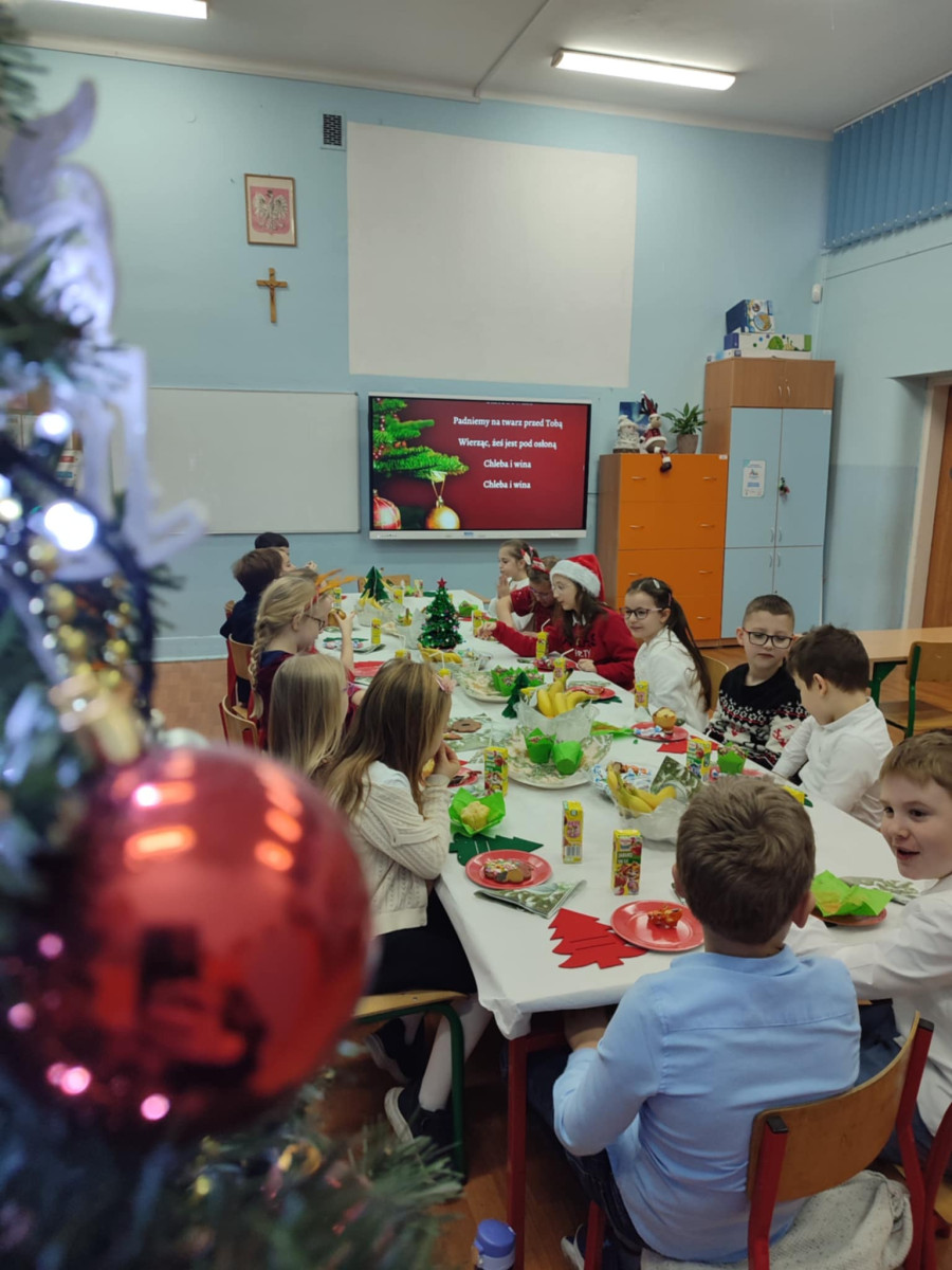Przy cichych dźwiękach kolędy, w świątecznych nastrojach, uczniowie klas 0-3 spotkali się by złożyć sobie życzenia.
