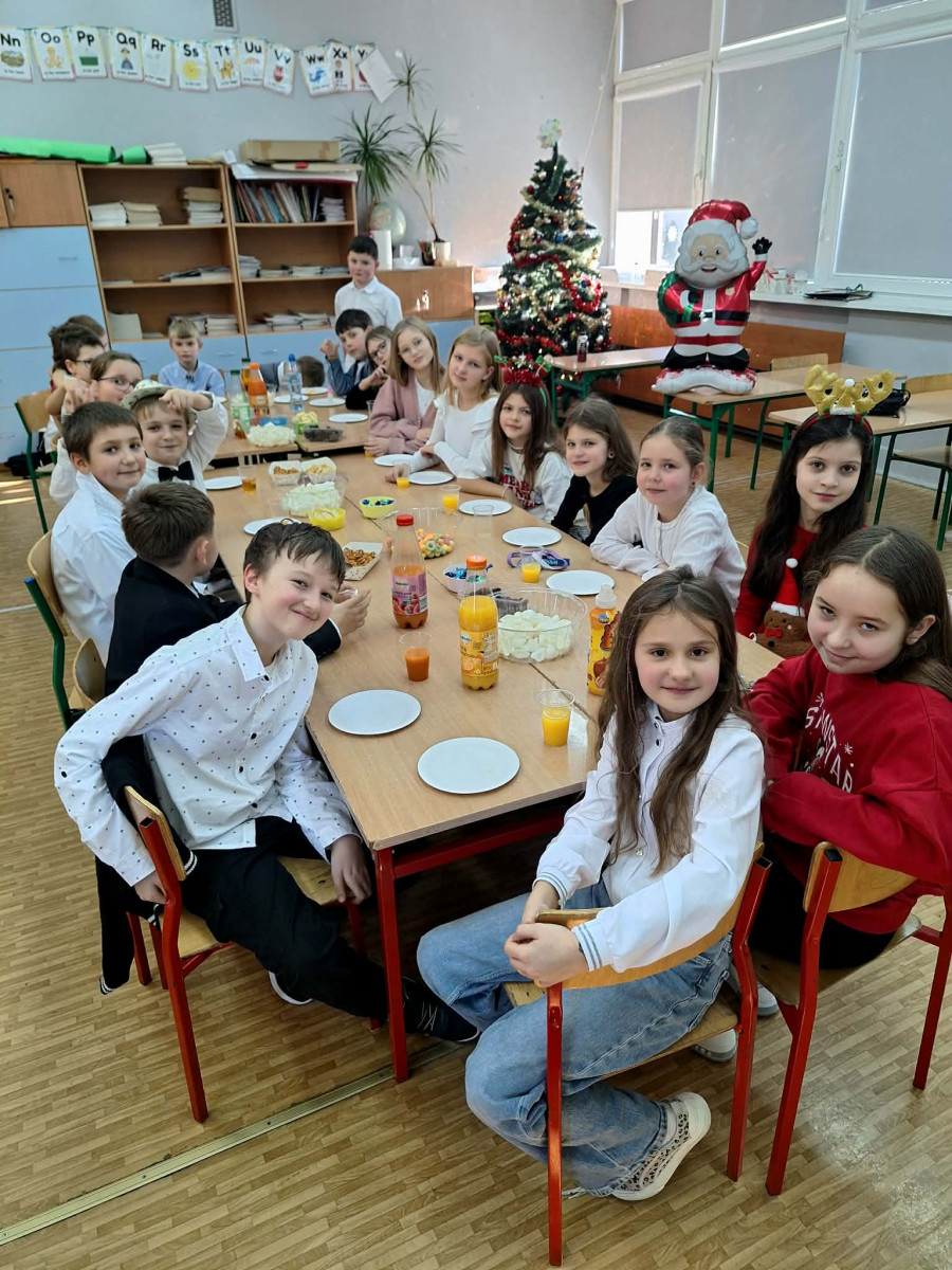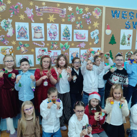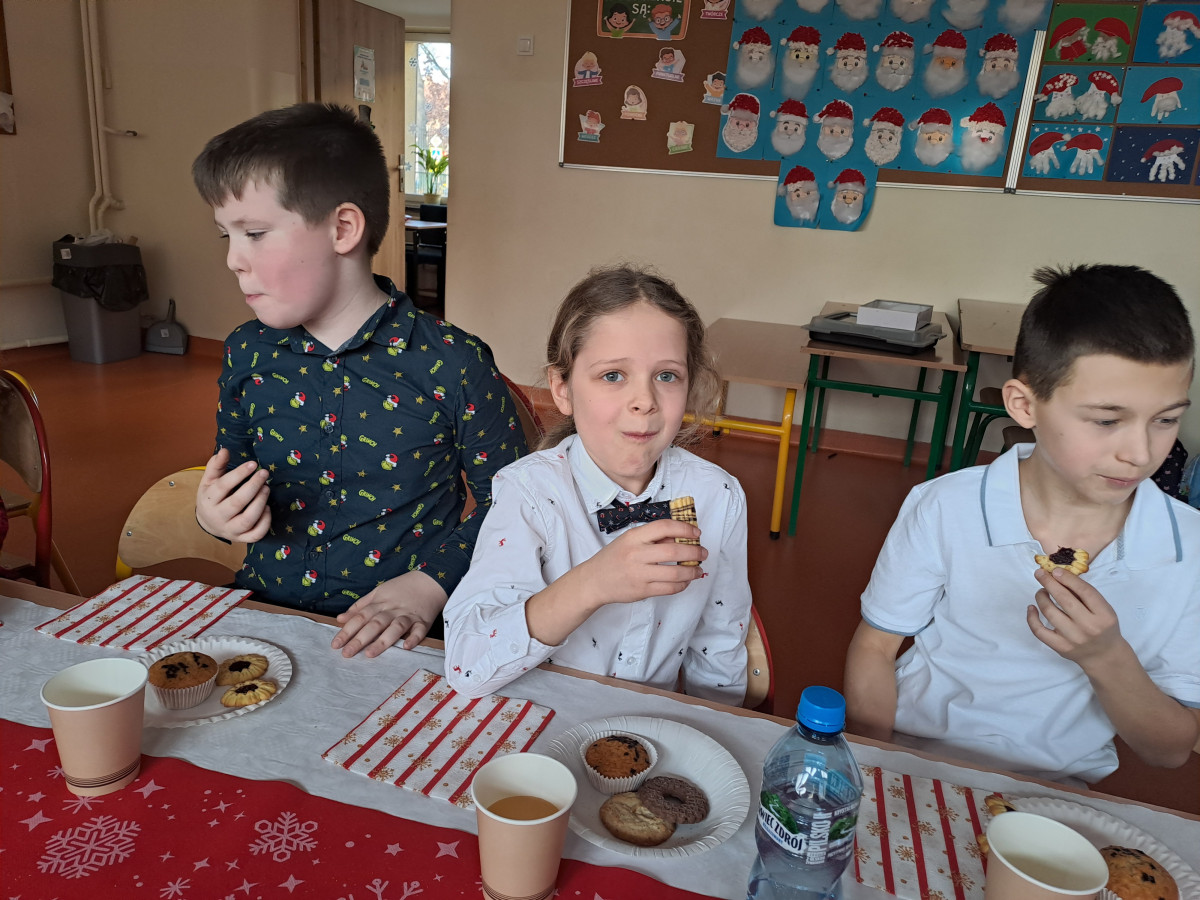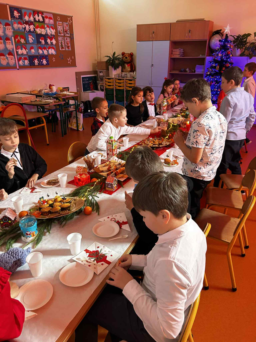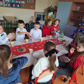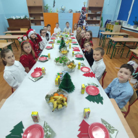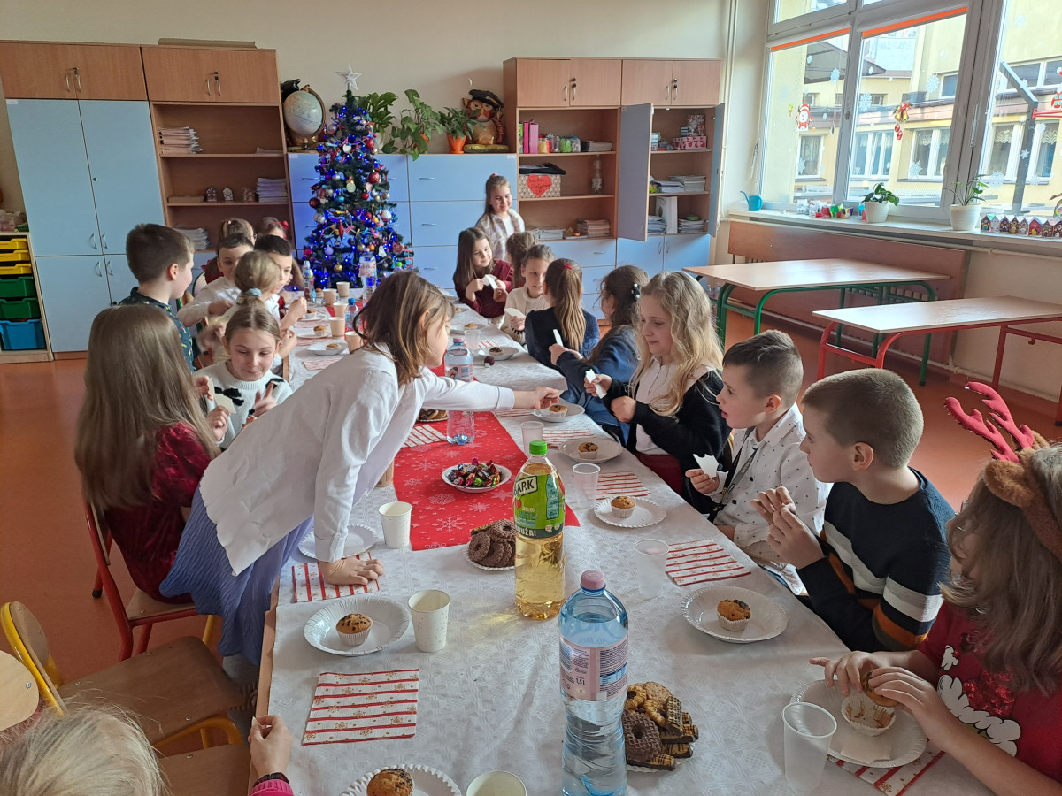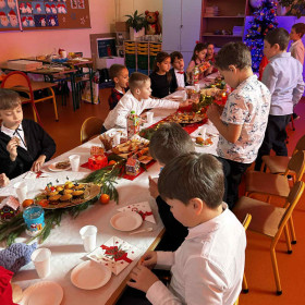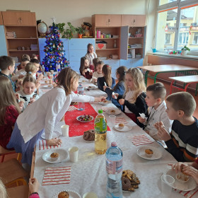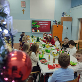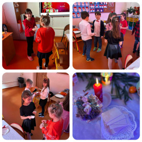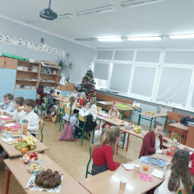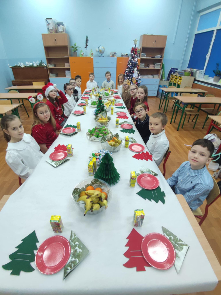 Przy cichych dźwiękach kolędy, w świątecznych nastrojach, uczniowie klas 0-3 spotkali się by złożyć sobie życzenia.