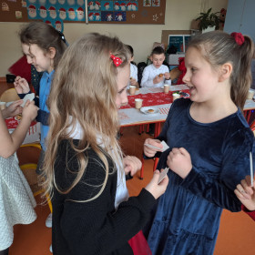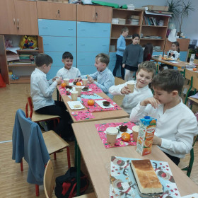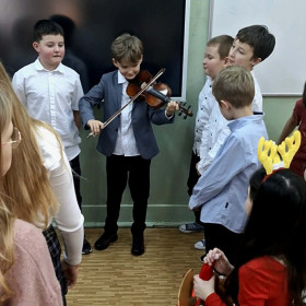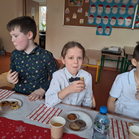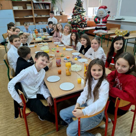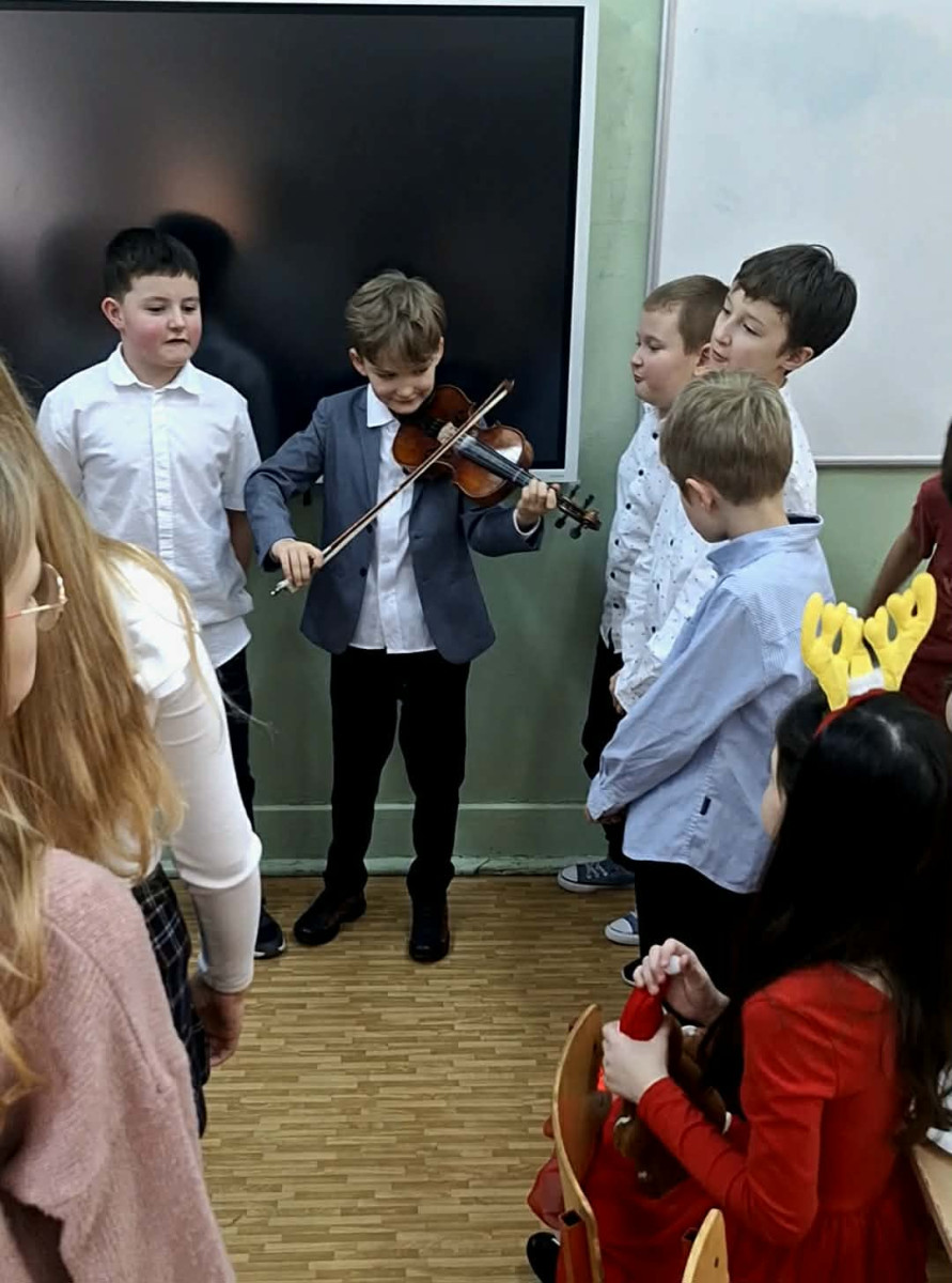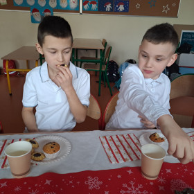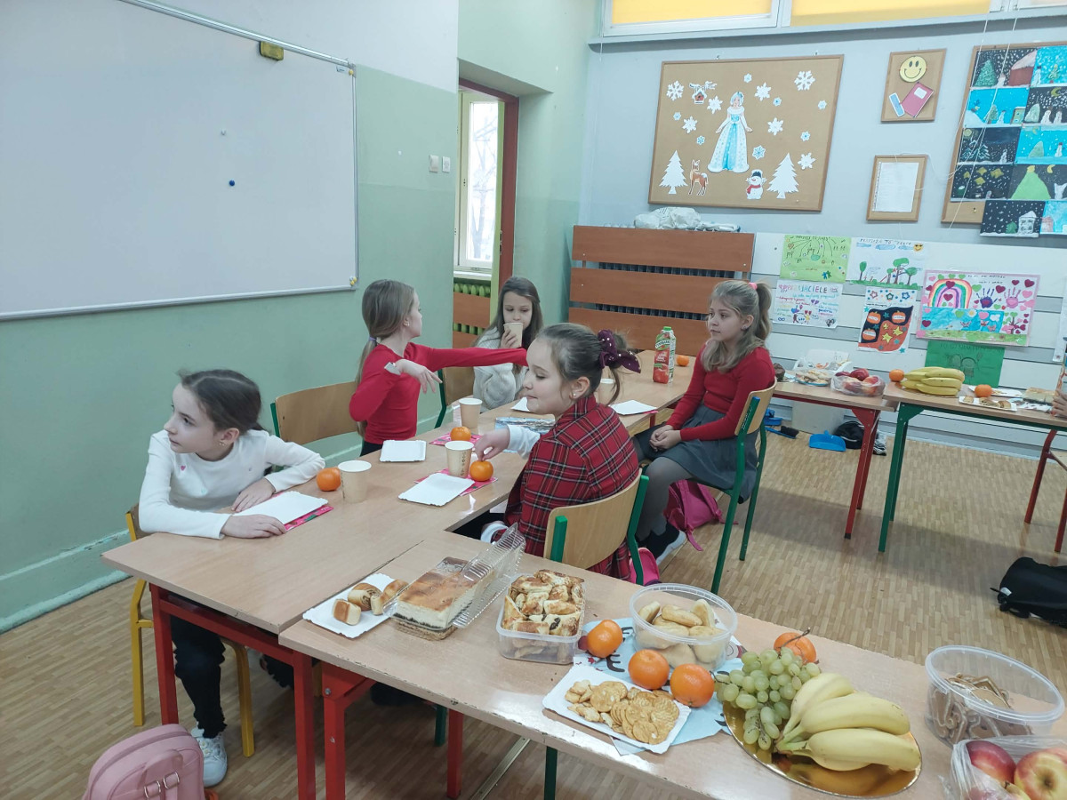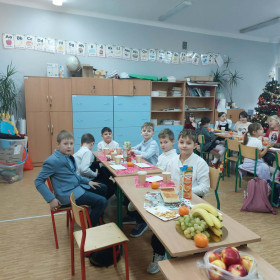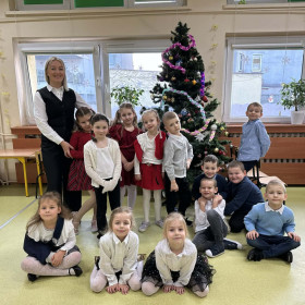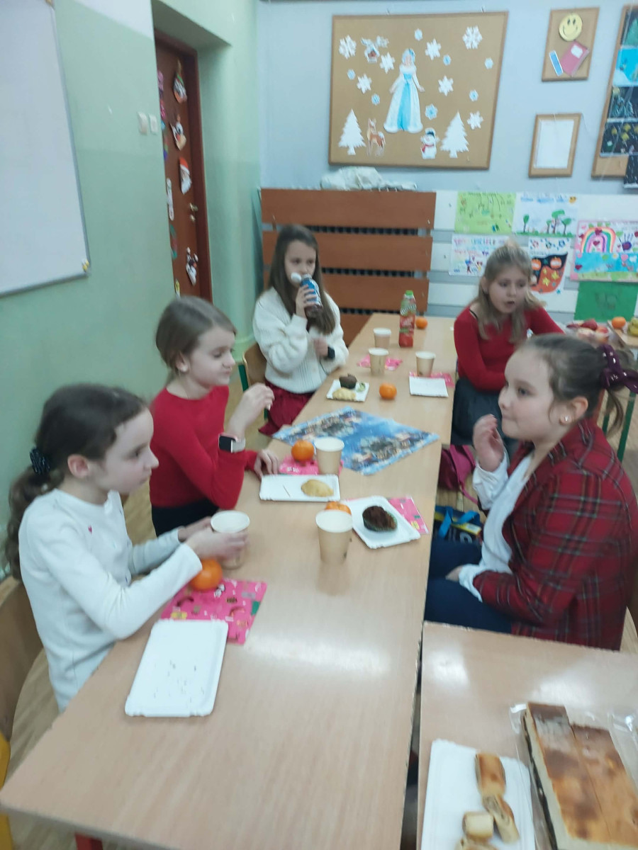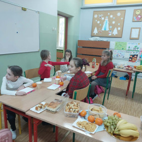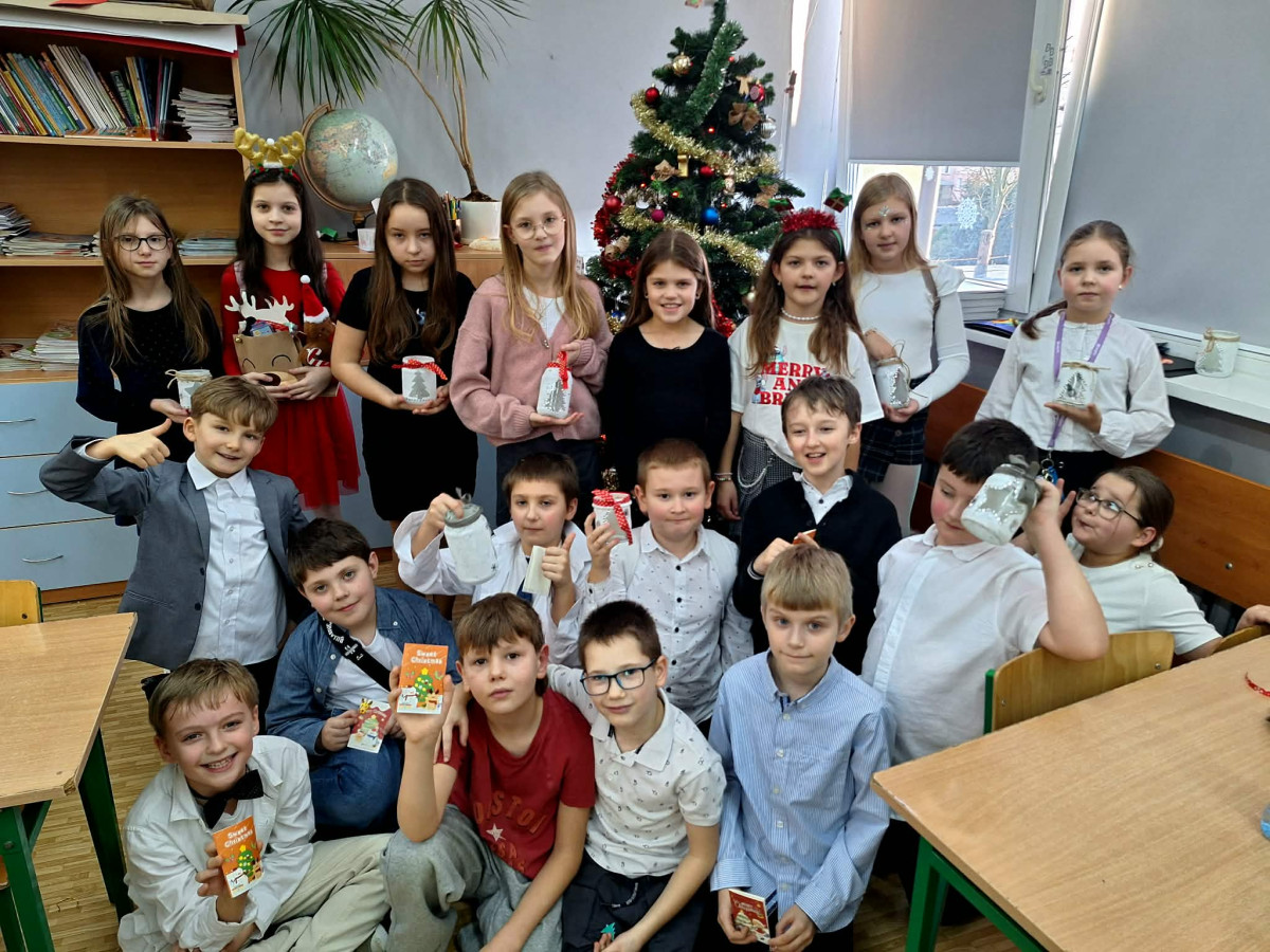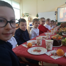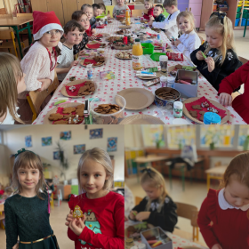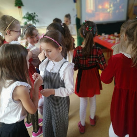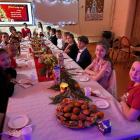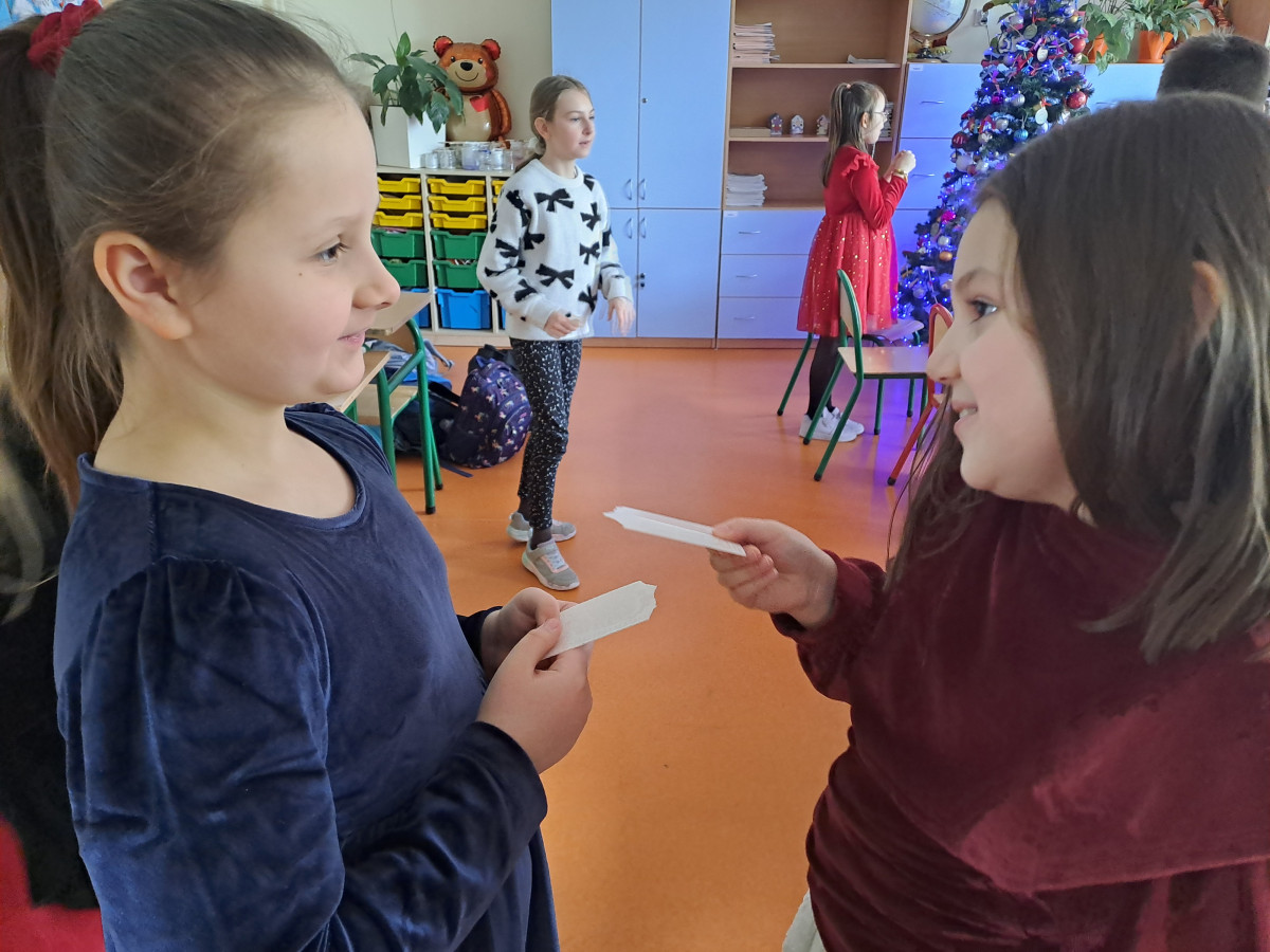 Przy cichych dźwiękach kolędy, w świątecznych nastrojach, uczniowie klas 0-3 spotkali się by złożyć sobie życzenia.