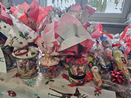 Nasza oferta w tym roku była wzbogacona o paczki z drobnymi upominkami, słoiczki ze słodkościami oraz piłki z autografami piłkarzy Korony. Na naszym kiermaszu pojawiły się również przepiękne stroiki świąteczne wykonane przez uczniów klas 4-8.