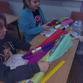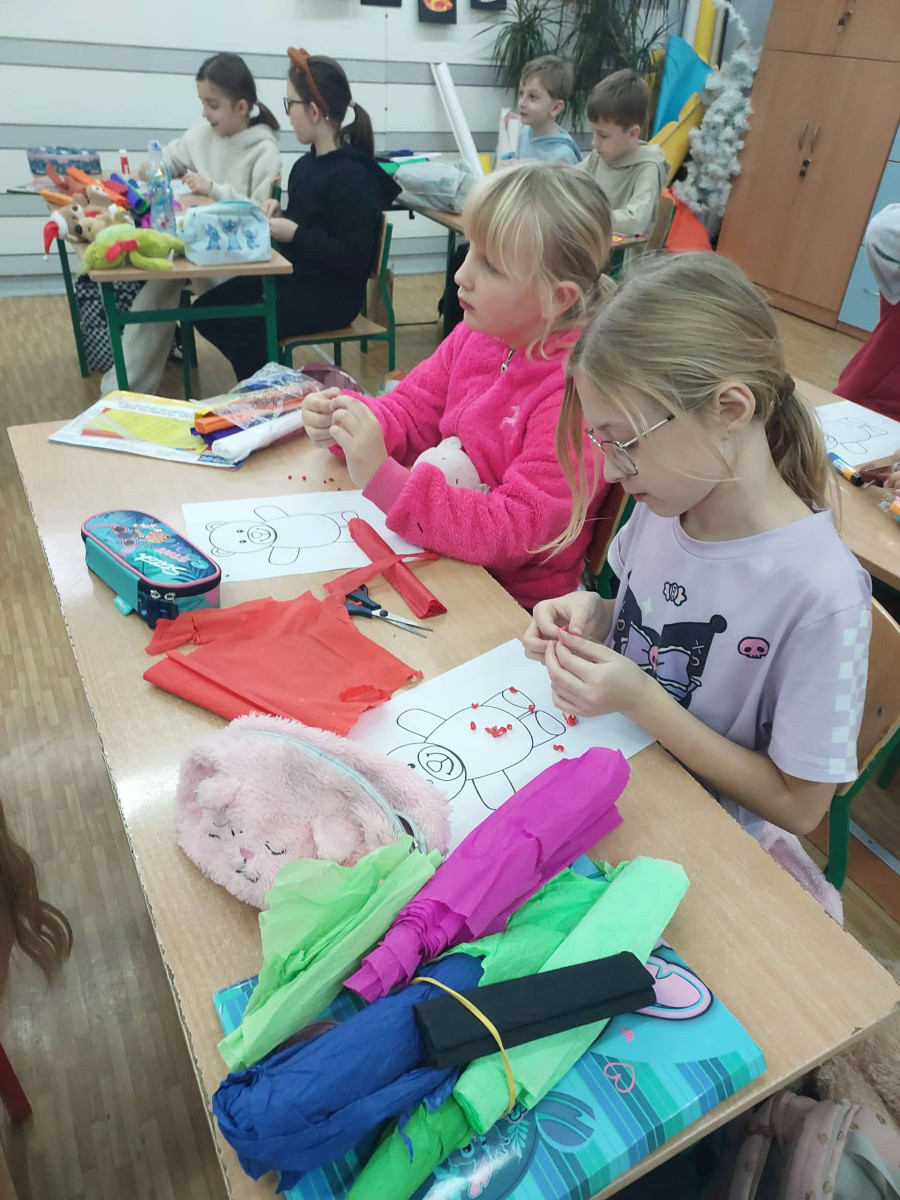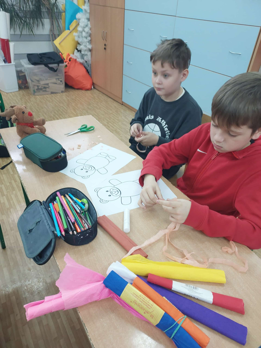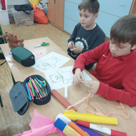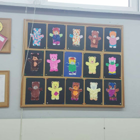 Wspólnie tworzyliśmy kolorowe prace przedstawiające tę słodką zabawkę, oglądaliśmy popularne „misiowe” bajki, takie jak „Gumisie”, „Miś Paddington” czy „Masza i Niedźwiedź”.