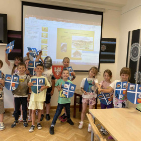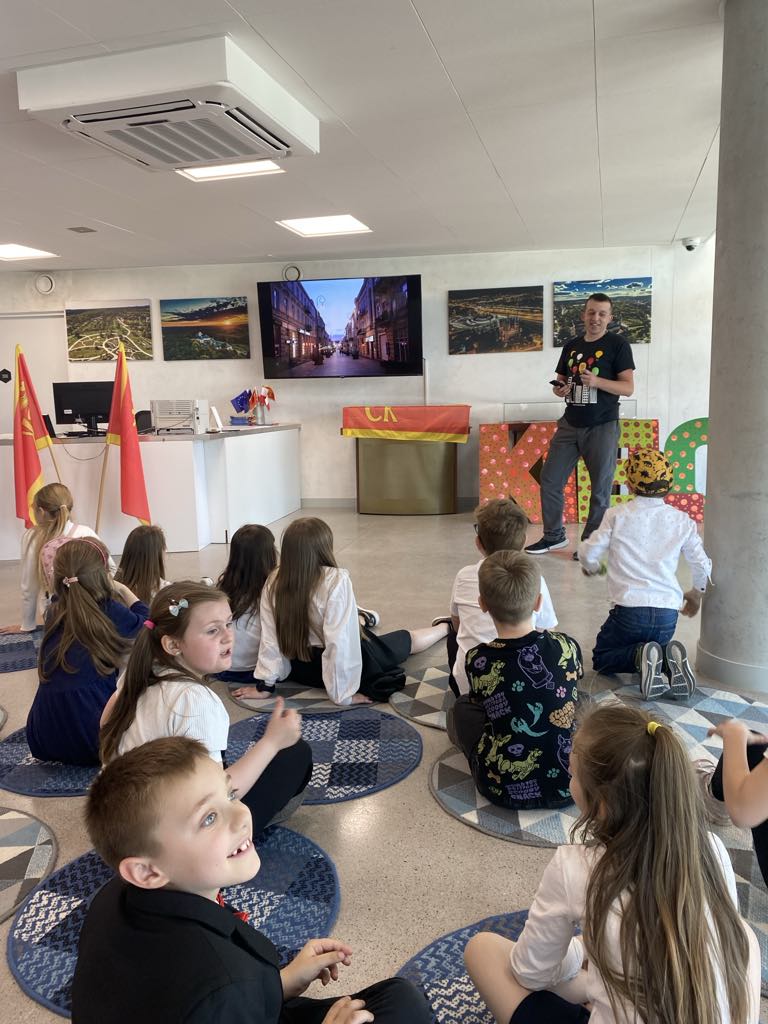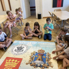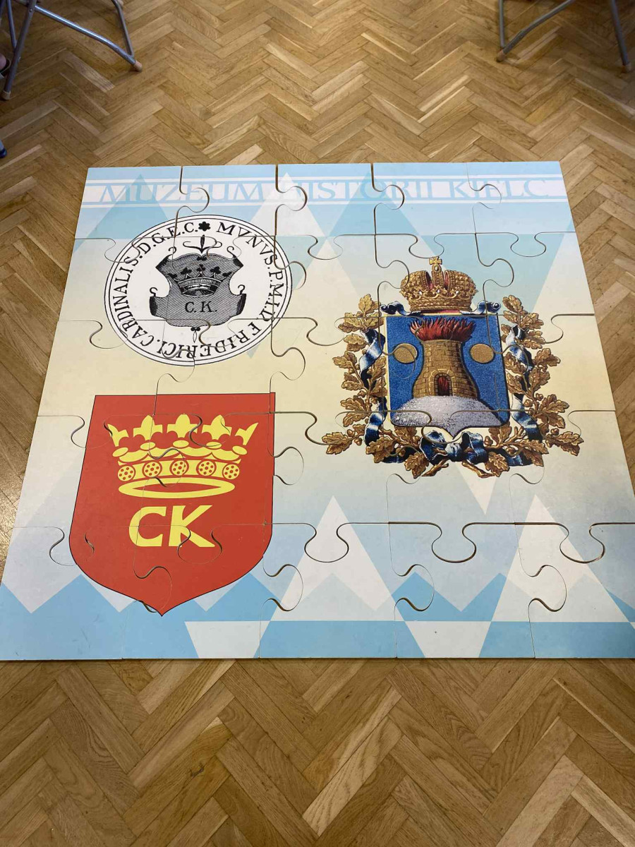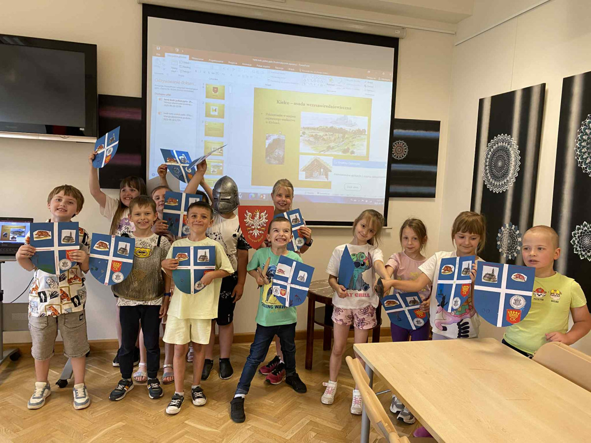 oraz symboliką herbu. W pierwszej części zajęć uczniowie poznali legendę o powstaniu miasta oraz dowiedzieli się, jak wyglądało życie w średniowiecznej osadzie. Uczniowie poznali budowę herbów, ich barwy, znaki oraz historię herbu Kielc: kto i kiedy go nadał
