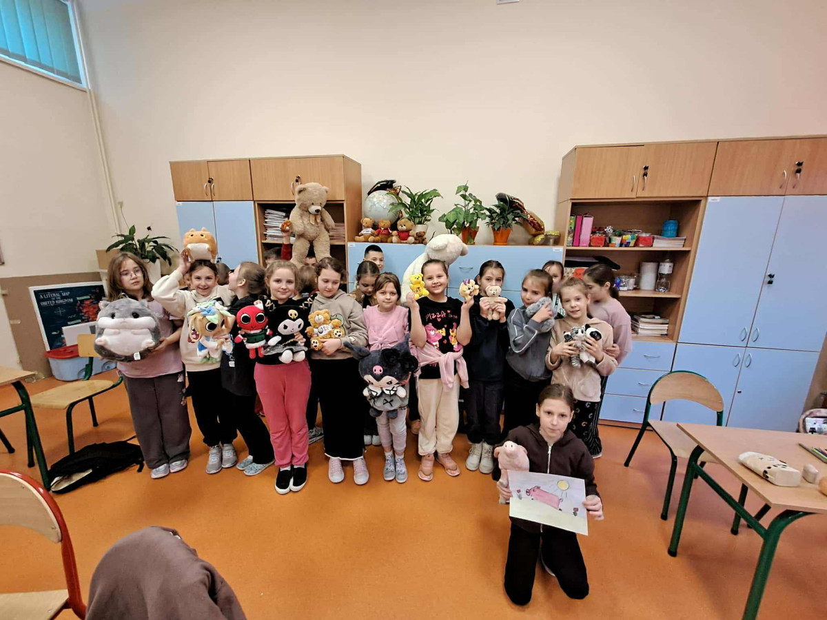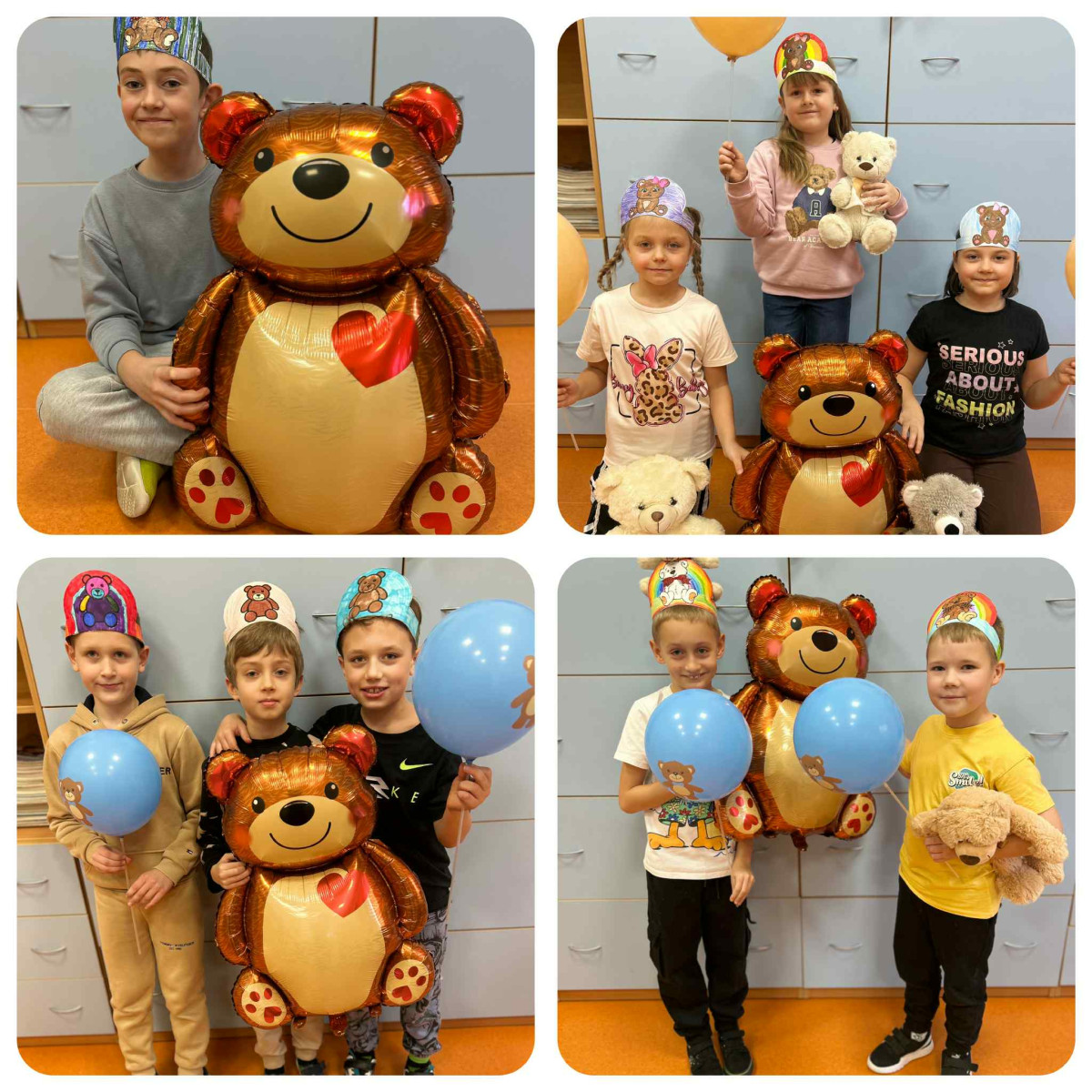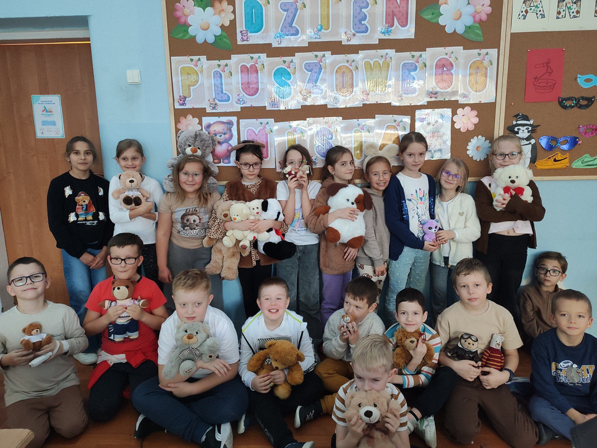 Dziś w naszej szkole zagościła cała gromada miękkich, puchatych bohaterów dzieciństwa — obchodziliśmy Dzień Pluszowego Misia.