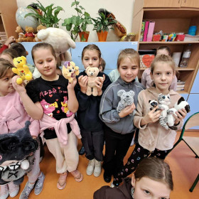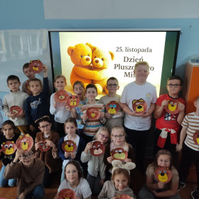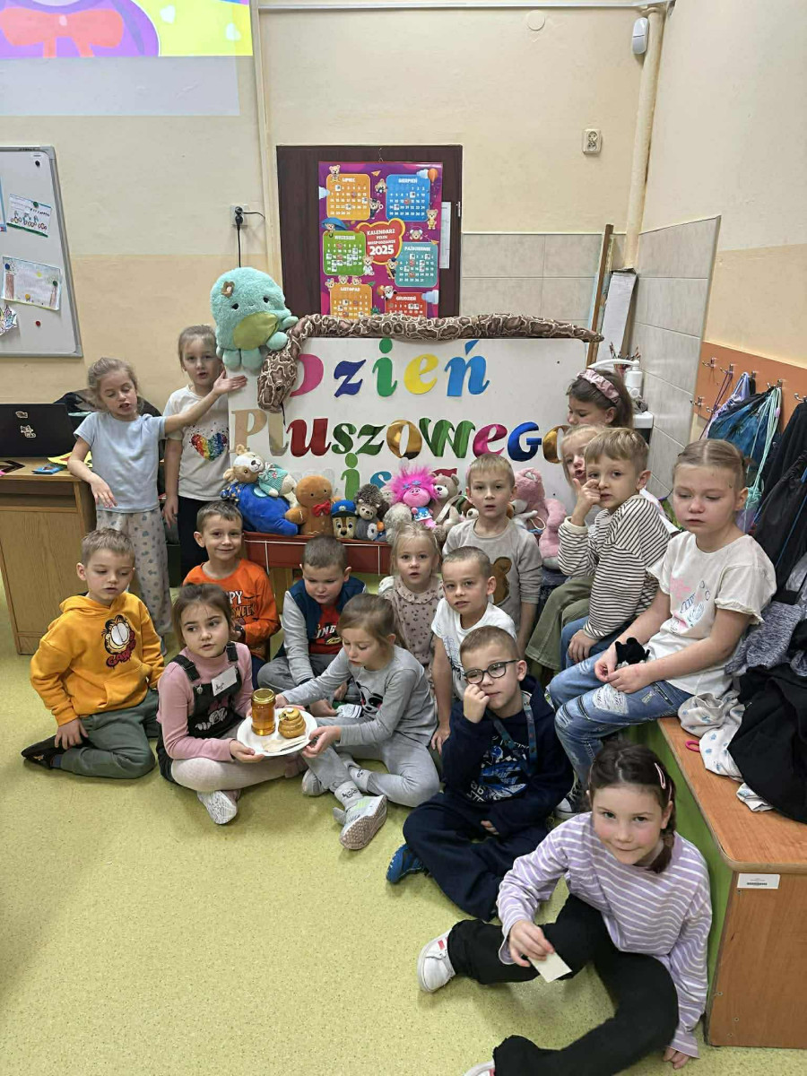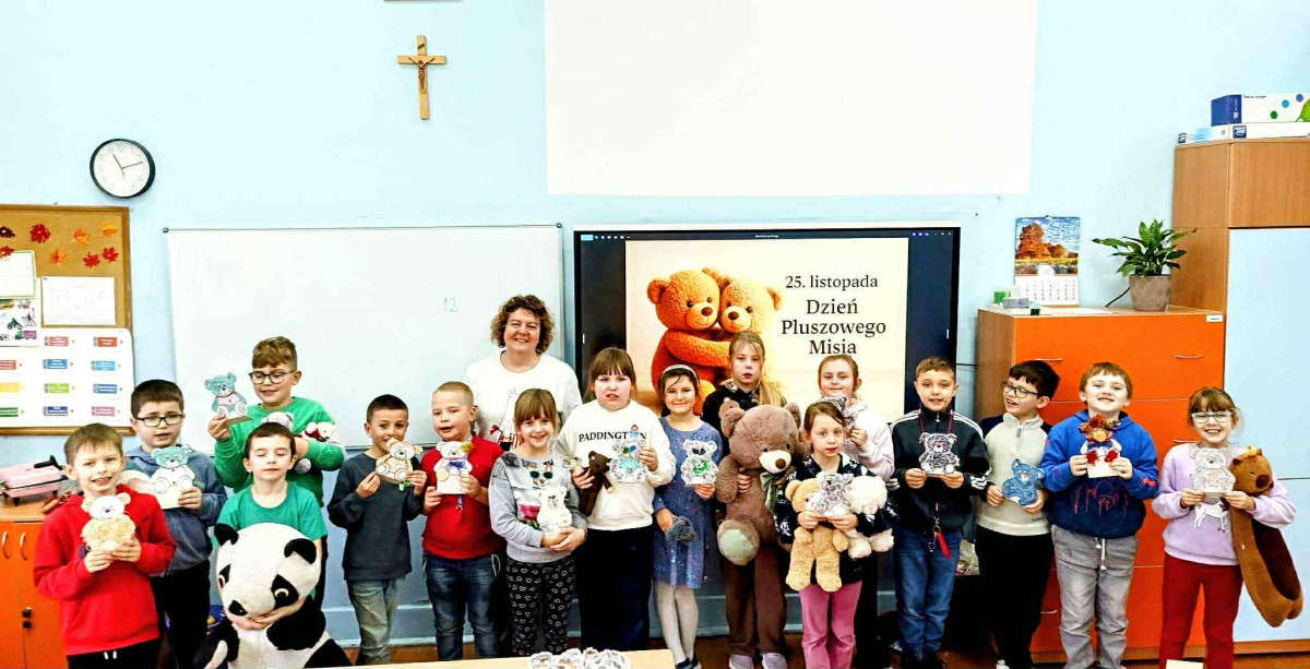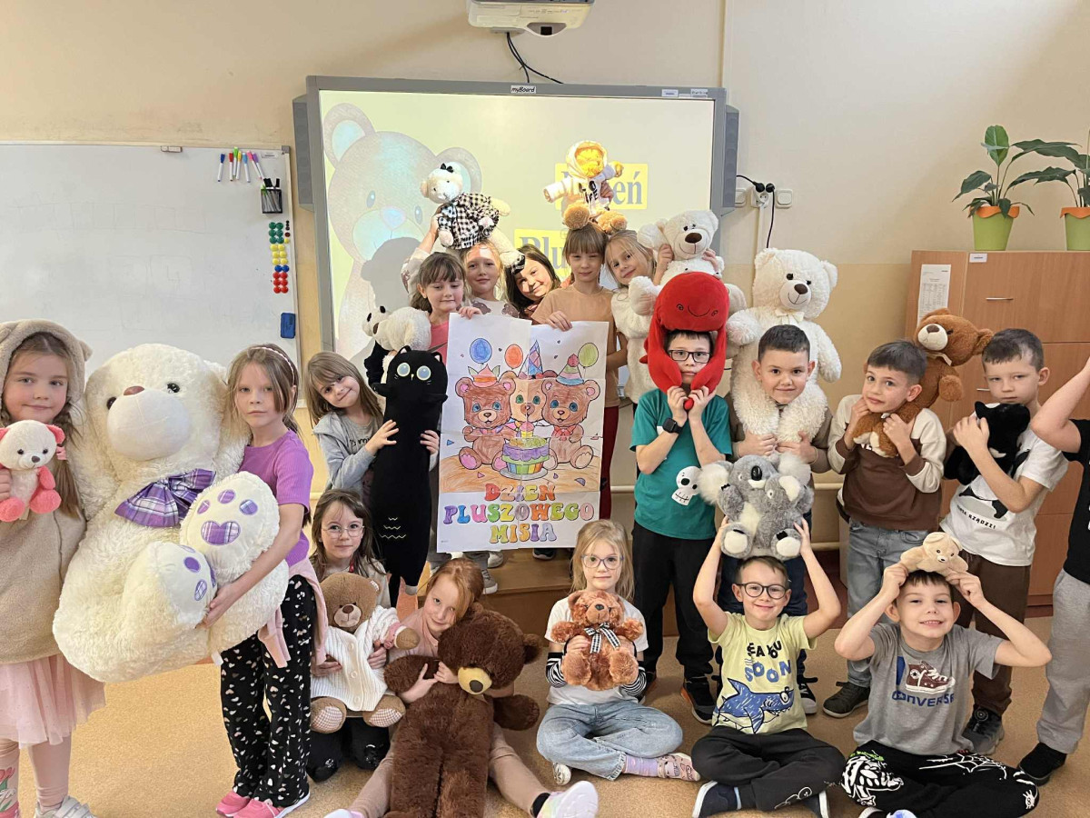 Dziś w naszej szkole zagościła cała gromada miękkich, puchatych bohaterów dzieciństwa — obchodziliśmy Dzień Pluszowego Misia.