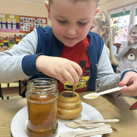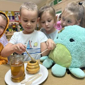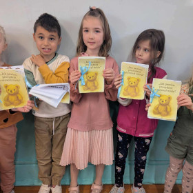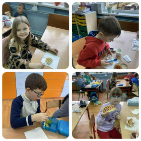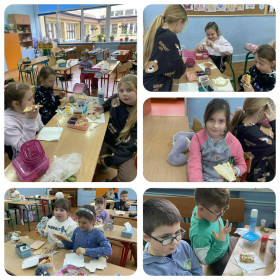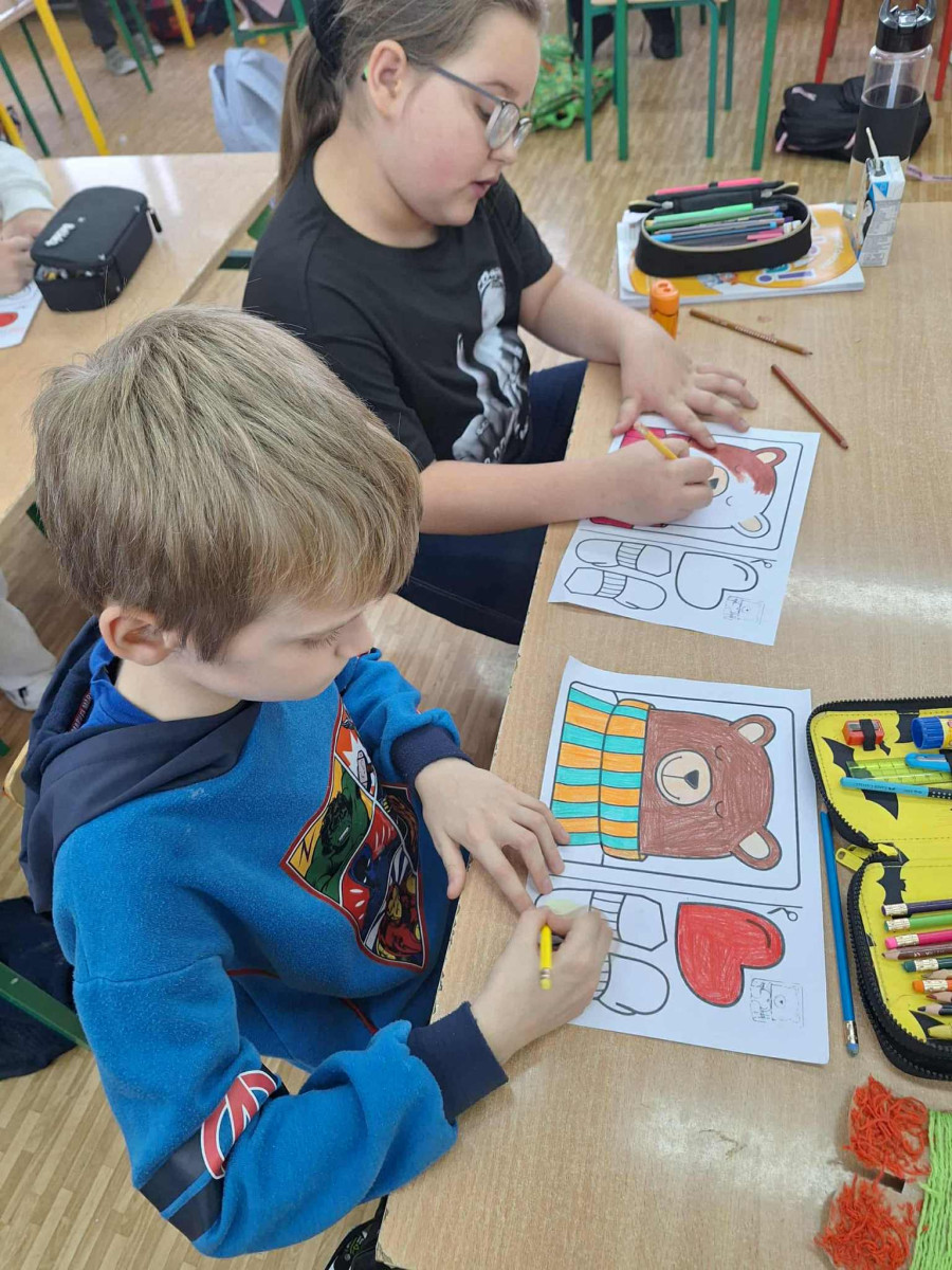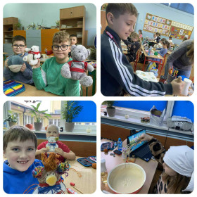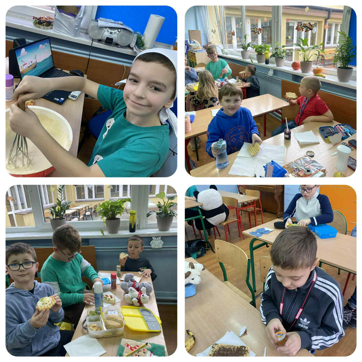 W klasach dzieci tworzyły piękne, tematyczne prace plastyczne, pełne ciepła i wyobraźni. Wspólnie oglądały także filmy i prezentacje, dzięki którym poznały historię pluszowego misia — strażnika dziecięcych sekretów i pocieszyciela w chwilach smutku. Uczniów z klasy 2C odwiedziła pani Monika Śliwińska- Szostak z którą zrobili pyszne gofry.