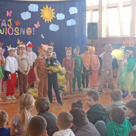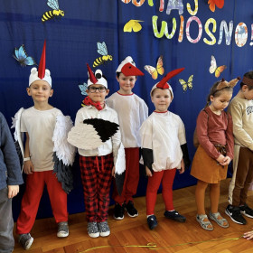 21.03.2024 r. uczniowie klasy Ic i dzieci z oddziału przedszkolnego wystąpili dla koleżanek i kolegów z klas I- III, aby wspólnie świętować pierwszy Dzień Wiosny. Bociany, żabki i inne zwierzęta wierszem, piosenkami i tańcem powitały Panią Wiosnę i pożegnały Panią Zimę. Miejmy nadzieję, że starania występujących uczniów sprawiły, iż ta najpiękniejsza pora roku zawita u nas na dobre