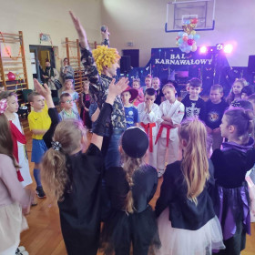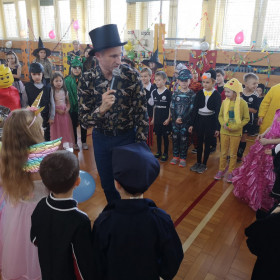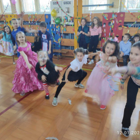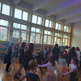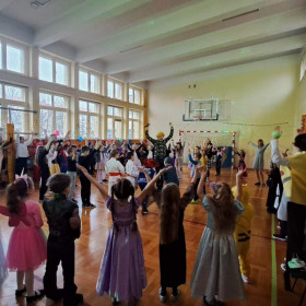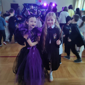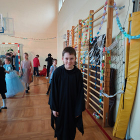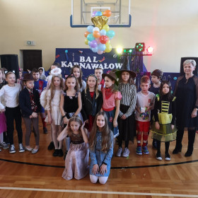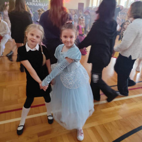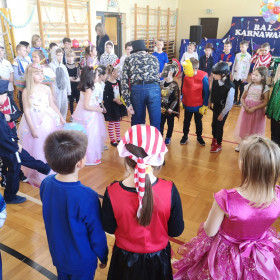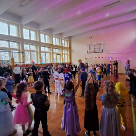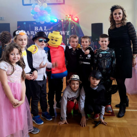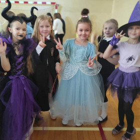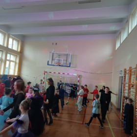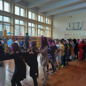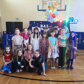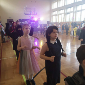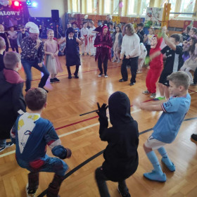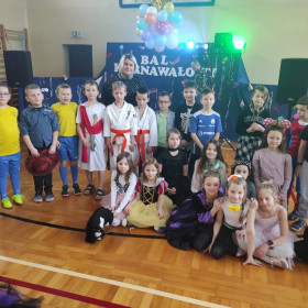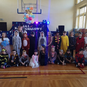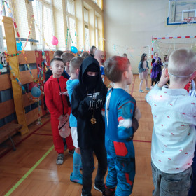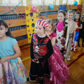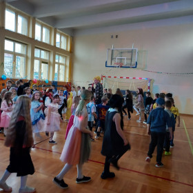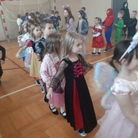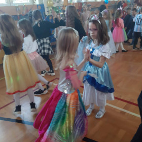 W udekorowanej sali gimnastycznej pojawiły się kolorowe postacie. Dzieci przebrane były za bohaterów znanych bajek, można było zobaczyć: wróżki, królewny, piratów, policjantów, biedronki, księżniczki, rycerzy, żołnierzy … nie sposób zliczyć i wymienić tych wszystkich postaci. Podczas zabawy tanecznej było bardzo kolorowo, wszyscy bawili się wesoło, a DJ pięknie umilał nam czas.