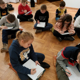 W poszukiwaniu odpowiedzi na pytanie "Po co nam emocje ?" uczniowie klasy 3 c 17.11.2022 r. wybrali się do Muzeum Narodowego w Kielcach. Uczestniczyli tam w warsztatach pt. "O emocjach wokół obrazu". Podczas warsztatów uczniowie starali się znaleźć odpowiedzi na pytania związane z emocjami, także tymi zaklętymi w obrazach. Pośród dzieł największych malarzy, takich jak Wyspiański, Malczewski czy Kossak dzieci odkrywały i odczuwały nowe emocje, jakie daje obcowanie ze sztuką. Zajęcia były bardzo ciekawe i pouczające.