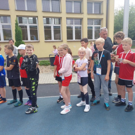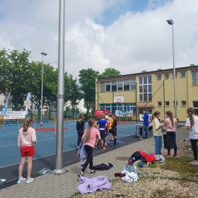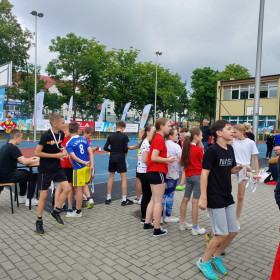 15 czerwca, na boiskach sportowych naszej szkoły odbył się wielki, międzyszkolny event lekkoatletyczny pod hasłem „Zacznij od lekkiej”, w ramach ogólnopolskich programów „Lekkoatletyka dla każdego!” i „Lekkoatletyczne Nadzieje Olimpijskie”. Wzięło w nim udział ponad 110 dzieci klas trzecich, ze szkól SP 24, SP 27 i gospodarze SP 15 w Kielcach. Młodzi zawodnicy mieli okazję sprawdzić swoje cechy motoryczne na pięciu próbach: bieg 60m, rzut Vortexem, pięcioskok, rzut piłką lekarską 1 kg. Przechodząc do kolejnych prób, wyniki swoich zmagań mieli zapisywane przez sędziów-wolontariuszy, na specjalnych „Kartach sprawności młodego lekkoatlety”. W przerwach między konkurencjami dogrzewali się w zabawach tanecznych, prowadzonych przez starsze szkolne koleżanki. Uśmiech i radość gościła na twarzach młodych lekkoatletów. Na koniec uczestnicy wzięli udział wspólnie w ostatniej próbie, biegu wytrzymałościowym (Beep Test). Podsumowaniem imprezy było wręczenie wszystkim uczestnikom medali i pamiątkowych dyplomów. Pytaniem, które pojawiało się najczęściej wśród dzieci, to kiedy kolejna taka impreza... ;-)