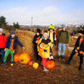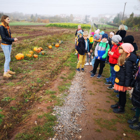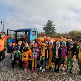 Klasa 1a swoje świętowanie rozpoczęła od wycieczki do Dyniowej Planety w Kielcach. W czasie wyprawy uczniowie poznawali środowisko przyrodnicze najbliższej okolicy, uświadomili sobie różnorodność dyń występujących w przyrodzie oraz obfitość produktów rolnych występujących jesienią w Polsce. Dzieci wysłuchały pogadanki o tematyce przyrodniczej, zwiedziły gospodarstwo, ale najważniejsze, że doskonale się przy tym bawiły. Klasa, wykorzystując dynie, zagrała w kółko i krzyżyk oraz w rzut kółkami do celu. Wszystko podczas wspaniałej pogody.