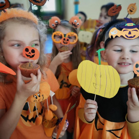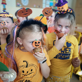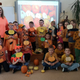 Po powrocie do szkoły były tańce dyń, dyniowy poczęstunek oraz dyniowa praca plastyczna.