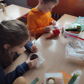 Na zakończenie zajęć dzieci miały okazję stworzyć własne kukiełki z warzyw – było mnóstwo śmiechu, kreatywności i zdrowych kolorów! 🥒🥕🍆