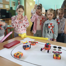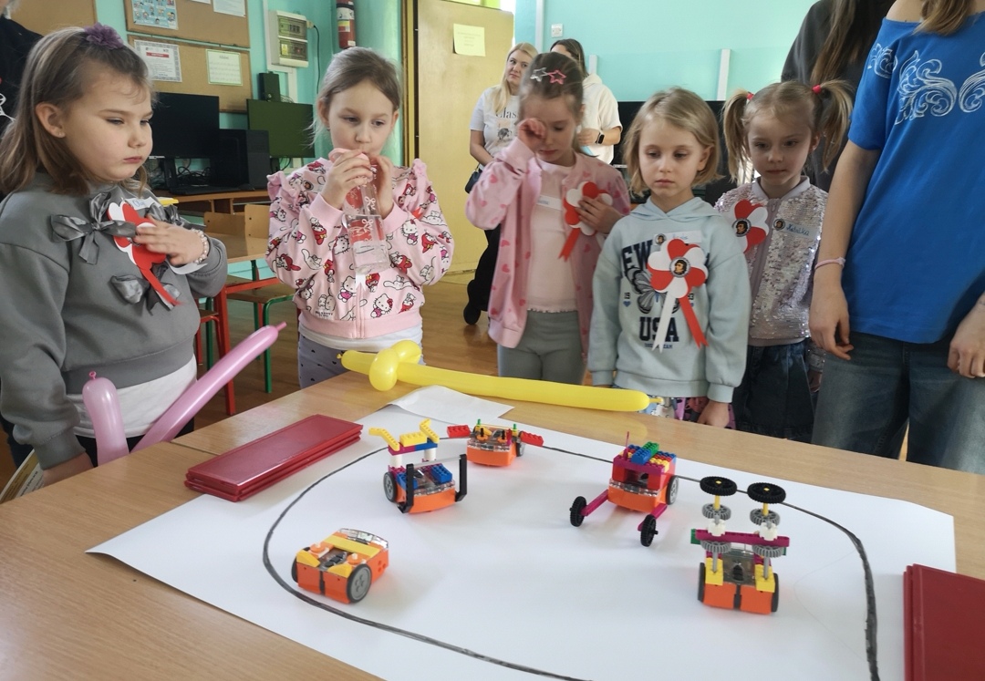 Ogromnym zainteresowaniem cieszyły się zabawy z robotyki. Można było zbudować roboty z klocków i zobaczyć jak je zaprogramować i uruchomić. Podczas Dnia Otwartego sala robotyki była jednym z najchętniej odwiedzanych miejsc – wielu gości z zaciekawieniem obserwowało, jak działają skonstruowane przez uczniów roboty.