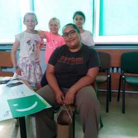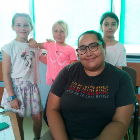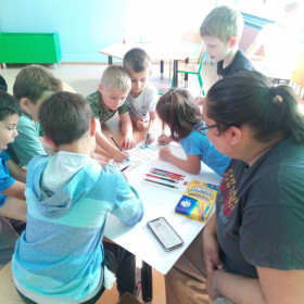 Maria pojawiła się w naszej placówce już 7 września i od razu zyskała sympatię wszystkich uczniów. Postanowiła, że będzie organizować zabawy w języku hiszpańskich dla najmłodszych, wspomagać pracę świetlicy, pracować z uczniami potrzebującymi wsparcia w języku angielskim i wraz z uczniami wykonywać różne prace plastyczne.