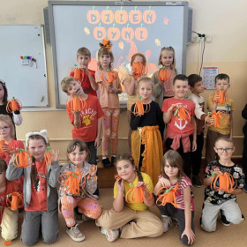 W tym dniu w szkole dominowały ubrania w kolorze pomarańczowym oraz innych barwach jesieni. Dynia była bohaterką zajęć lekcyjnych – uczniowie poznawali ciekawostki o tym warzywie, a na zajęciach plastycznych wykonywali dynie z papieru.