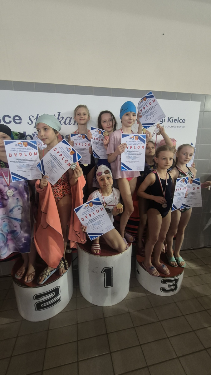 31 marca na krytej pływalni Foka na osiedlu Barwinek odbyły się Mistrzostwa Kielc klas drugich szkół podstawowych w pływaniu. Naszą szkołę z dumą reprezentowały: Iga Michta, Antosia Jarosz, Kalina Dudek oraz Natalia Krzyżanowska.