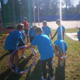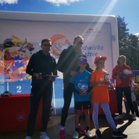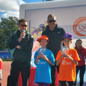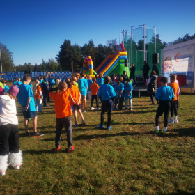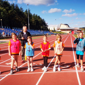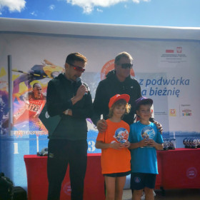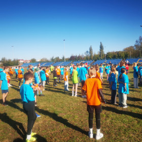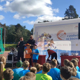 We wtorek, 1 października, nasza szkoła wzięła aktywnie udział w wydarzeniu sportowo-rekreacyjnym „Z podwórka na bieżnię”, które odbyło się na stadionie lekkoatletycznym przy ulicy Leszka Drogosza na Pakoszu. Organizatorem akcji była warszawska fundacja „Wychowanie przez Sport” a jej celem było upowszechnianie sportu i rekreacji wśród dzieci i młodzieży szkolnej klas IV-VI. Imprezę prowadzili nasi wielcy sportowcy: Sebastian Chmara, halowy mistrz świata i Europy w siedmioboju, obecnie wiceprezes Polskiego Związku Lekkiej Atletyki, koordynator główny programu Lekkoatletyka dla każdego! i komentator sportowy TVP oraz Marek Plawgo, halowy mistrz świata i Europy,  brązowy medalista Mistrzostw Europy w biegu na 400m przez płotki. Obecnie prezes Dolnośląskiego Związku Lekkiej Atletyki. Sportowcom również towarzyszył wiceprezydent Kielc - Bartłomiej Zapała.