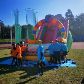 Po rywalizacji sportowej, był czas na zabawy integracyjne – animacje, bańki, zjeżdżalnie oraz na wspólne zdjęcia i autografy. Dla niektórych dzieci było to naprawdę pierwsze spotkanie z bieżnią lekkoatletyczną i „królową sportu” – lekkoatletyką.