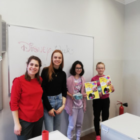 Konkurs na karykaturę postaci z bajek Disneya wygrały Adrianna Stąpór z 7a i Natalia Fatyga z 7b.