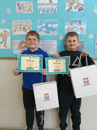 Wojciech Kochel i Kamil Wypych, którzy są uczniami klasy 5 b, wzięli udział w międzyszkolnym konkursie językowym "Zabawa Słowem-Pozytywne Skojarzenia z Autyzmem." Konkurs zorganizowało Krajowe Towarzystwo Autyzmu Oddział Kielce. Wiersze piątoklasistów zdobyły uznanie jury: II miejsce Wojciech Kochel, III miejsce Kamil Wypych.