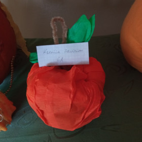 Nie zapominajmy, że dynia to smaczne oraz  bogate w witaminy warzywo. Aby przypomnieć wszystkim o jej walorach smakowych, zaprosiliśmy uczniów do udziału  w konkursie kulinarnym. Dyniowe przysmaki pod postacią ciasteczek, tart,  babeczek oraz  ciast cieszyły oczy i podniebienia. Zuzanna Idkowiak (kl.4 a) upiekła dyniowe babeczki, Jakub Pisarek (kl.4 b) zaskoczył jury dyniowym sernikiem, Hania Skorupka (kl.4 b) zaserwowała dyniowe ciasto z orzechami, Gabrysia Kustra (kl.6 a) upiekła dyniowe ciasteczka, Roksana Rzędowska (kl. 6 b) ciasto czekoladowo - dyniowe, Laura Deledda (kl. 7 b) tartę z kremem z dyni, a Kalina Parlicka (kl. 4 c) przygotowała dyniowe babeczki z kruszonką.
