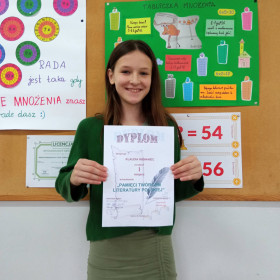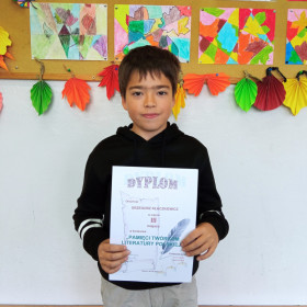Uczniowie klas 4-8 wzięli także udział w międzyszkolnym konkursie plastyczno-technicznym "Pamięci Twórcom Literatury Polskiej", który zorganizowała biblioteka i świetlica Zespołu Szkolno-Przedszkolnego nr 2 w Kielcach. Klaudia Romaniec z klasy 5 a zajęła w nim I miejsce, a Grzegorz Kłaczkiewicz z kl. 4 a zdobył III miejsce.