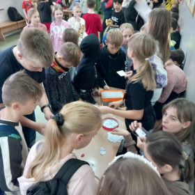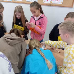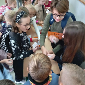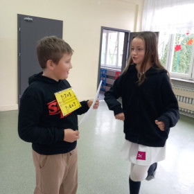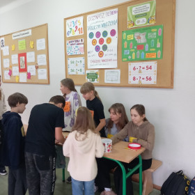 We wszystkie dni naszego świętowania nie brakowało też możliwości zmierzenia się z trudniejszymi zadaniami i tabliczkowymi wyzwaniami. Na lekcjach matematyki uczniowie w aktywny sposób utrwalali znajomość mnożenia i dzielenia: były stacje zadaniowe, sportowe zabawy z tabliczką mnożenia oraz różnego typu gry i zabawy aktywizujące. Ponadto w każdy dzień uczniowie mogli rozwiązywać logiczne zadania i łamigłówki.