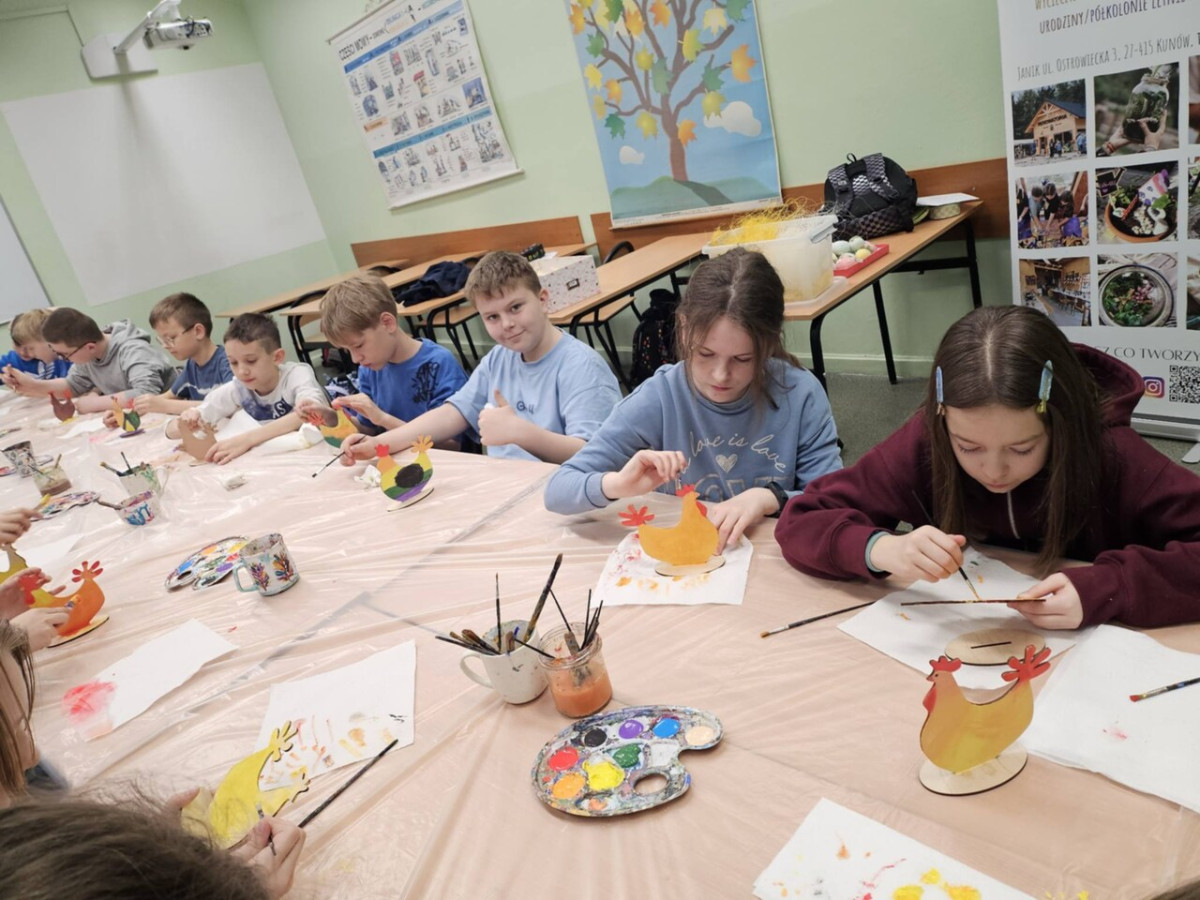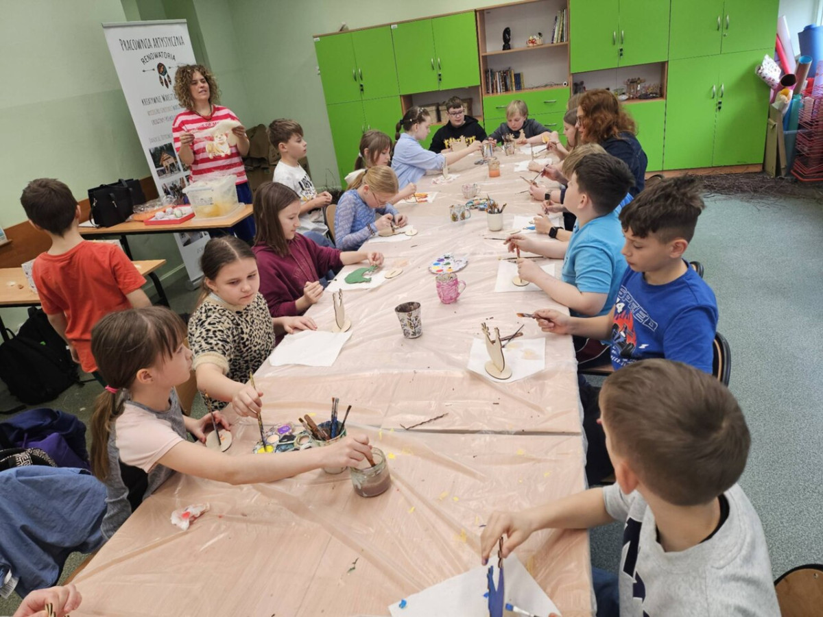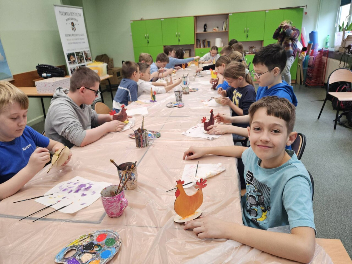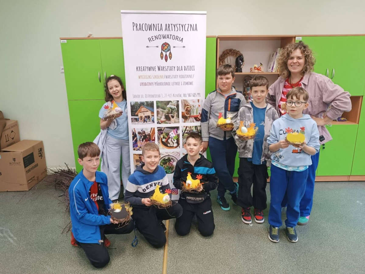 1 kwietnia uczniowie klas 4a, 4b i 4c wzięli udział w wyjątkowych warsztatach wielkanocnych zorganizowanych przez Renowatorię. Podczas zajęć mieli okazję samodzielnie wykonać świąteczną ozdobę przestrzenną - wielkanocną kurkę Warsztaty były nie tylko okazją do rozwijania zdolności manualnych, ale także wprowadziły uczniów w radosny, wielkanocny nastrój.