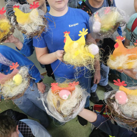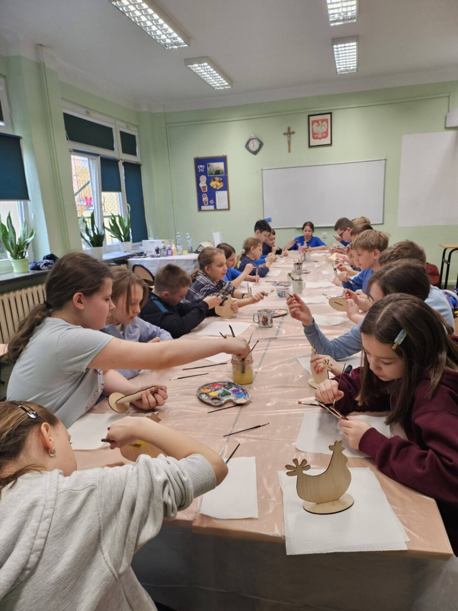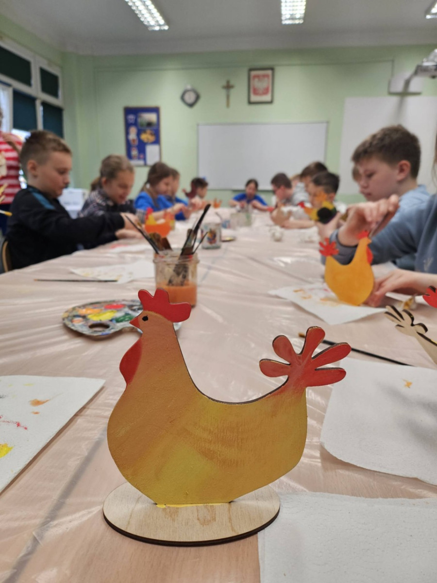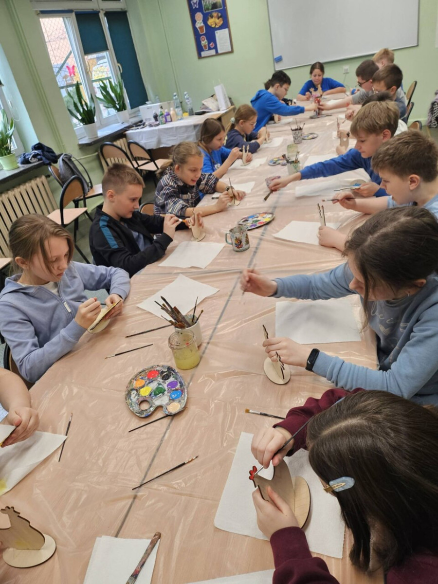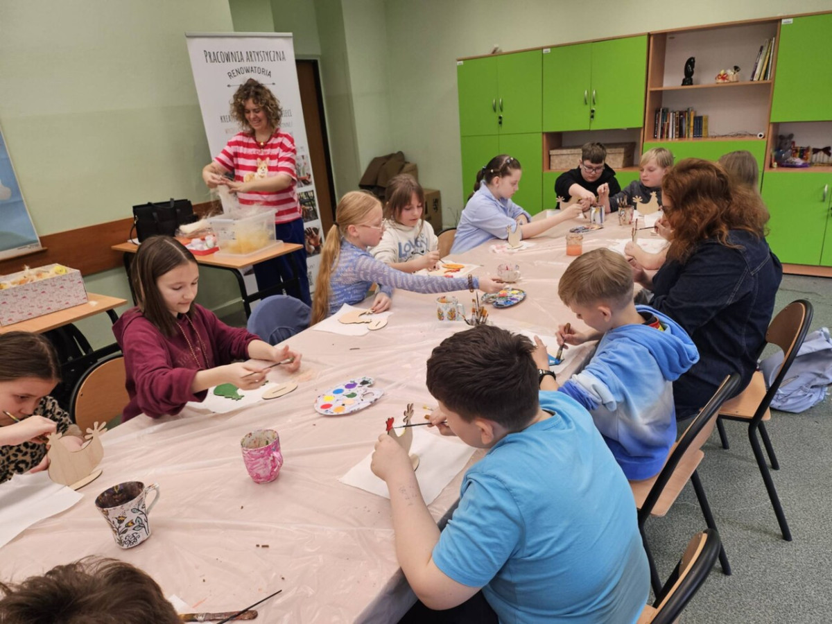 1 kwietnia uczniowie klas 4a, 4b i 4c wzięli udział w wyjątkowych warsztatach wielkanocnych zorganizowanych przez Renowatorię. Podczas zajęć mieli okazję samodzielnie wykonać świąteczną ozdobę przestrzenną - wielkanocną kurkę Warsztaty były nie tylko okazją do rozwijania zdolności manualnych, ale także wprowadziły uczniów w radosny, wielkanocny nastrój.