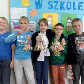Z okazji Dnia Chłopaka klasa 4a wybrała się do kina na film "O psie, który jeździł koleją". Dziewczynki z 4a przygotowały niespodziankę dla swoich kolegów z klasy i wręczyły im drobne upominki.