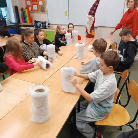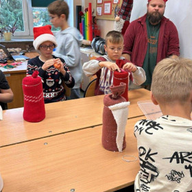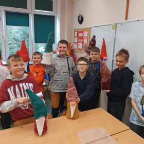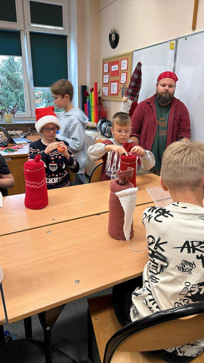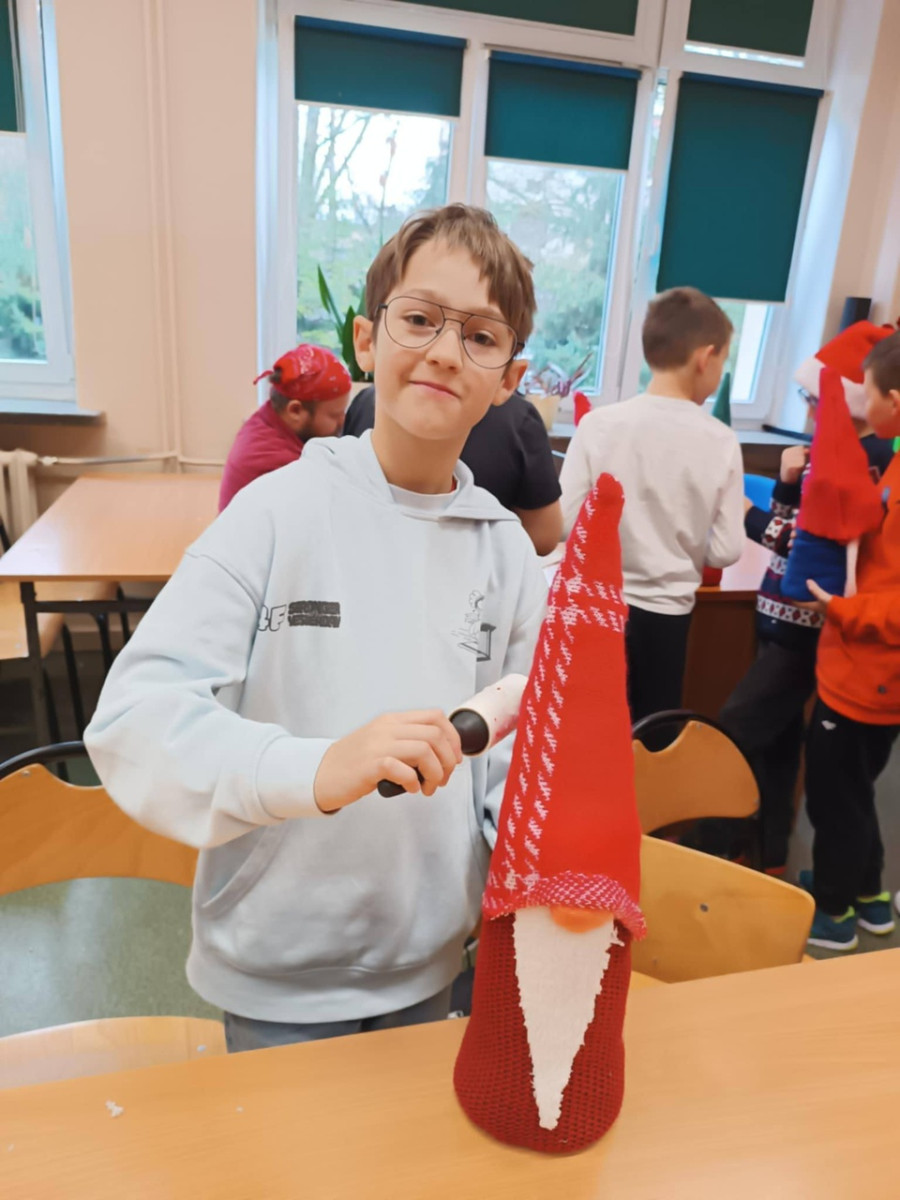 W dniu 2 grudnia uczniowie klas 4a, 4b i 4c uczestniczyli w kreatywnych warsztatach przygotowanych przez pracowników pracowni artystycznej Renowatoria. Podczas zajęć tworzyli świąteczne skrzaty z wykorzystaniem różnorodnych materiałów. Dzięki zaangażowaniu i uważnemu słuchaniu instrukcji powstały piękne, własnoręcznie wykonane dekoracje na zbliżające się święta.
