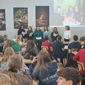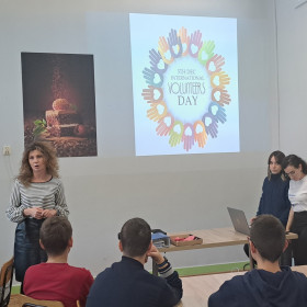 Aby uczcić to szczególne święto, 5 grudnia 2023 r. w naszej szkole odbyło się spotkanie, podczas którego przedstawiciele SKW oraz wolontariuszki z Europejskiego Korpusu Solidarności: Maria z Hiszpanii i Kubranur z Turcji przybliżyli ideę pomocy i zachęcali, aby dołączyć do grona pomagających.