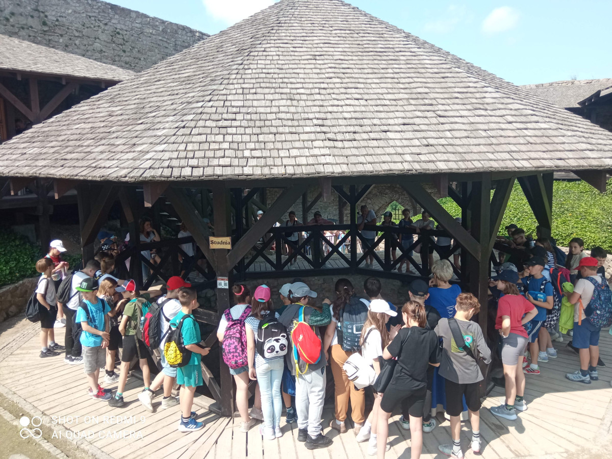 To właśnie tu powstała makieta Kamieńca Podolskiego, gdzie nagrano widowiskowe sceny batalistyczne do "Pana Wołodyjowskiego". Pamiątką po tym wydarzeniu jest Muzealna Izba Pana Wołodyjowskiego, która znajduje się w piwnicach „Niemczówki”. Potem zwiedziliśmy Zamek Królewski, który zachwycił nas swoją historią i pięknymi widokami. Odwiedziliśmy również Centrum Pamięci Kultury Żydowskiej w Chęcinach, które mieści się w dawnej Synagodze. Podczas tej wycieczki znaleźliśmy również czas na lody. Ostatnim punktem naszego programu było ognisko z kiełbaskami oraz wspólne gry i zabawy na świeżym powietrzu.