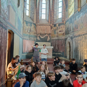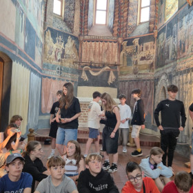 Podczas wycieczki mieliśmy okazję poznać wiele ciekawych miejsc i zabytków Lublina. Zwiedzanie rozpoczęliśmy od Bramy Grodzkiej, która kiedyś oddzielała miasto chrześcijańskie od dzielnicy żydowskiej. Zatrzymaliśmy się na Placu po Farze, gdzie kiedyś stała najstarsza parafia Lublina. Zobaczyliśmy również Trybunał Koronny, w którym dawniej odbywały się najważniejsze sądy w Polsce. Wokół lubelskiego rynku podziwialiśmy kolorowe kamienice z pięknymi zdobieniami, a przewodniczka opowiedziała nam legendę o "kamieniu nieszczęścia", który podobno przynosi pecha każdemu, kto go dotknie. Odwiedziliśmy również Katedrę Lubelską pw. św. Jana Chrzciciela i św. Jana Ewangelisty, gdzie zachwyciły nas bogato zdobione wnętrza. Spacerując po Starym Mieście, dotarliśmy do Zamku Królewskiego, gdzie podziwialiśmy piękną Kaplicę Św. Trójcy, słynącą z unikatowych fresków.