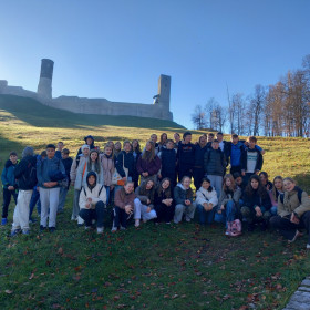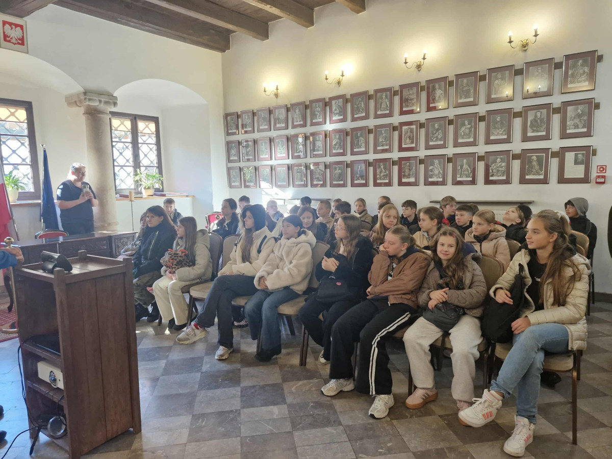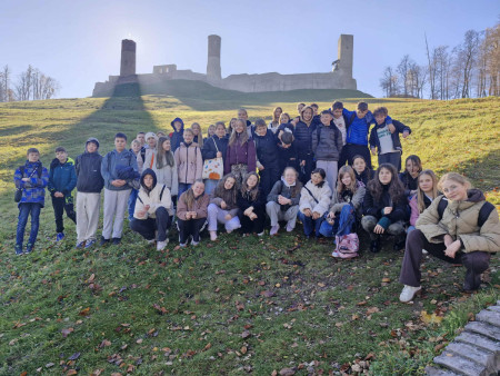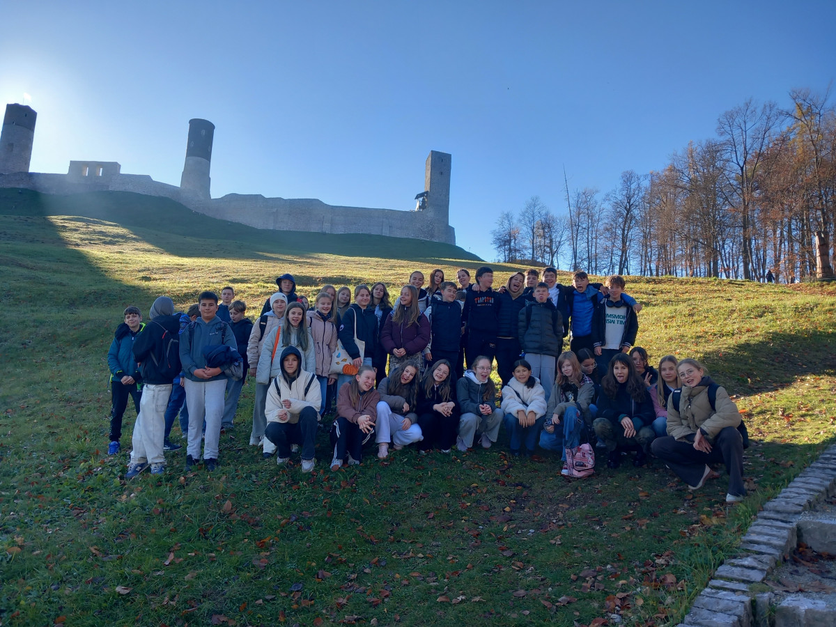6 listopada uczniowie klasy 6a,6b wzięli udział w wycieczce do Chęcin – w ramach projektu „Świętokrzyski Kalejdoskop Dziedzictwa – aktywna edukacja kulturalna”. Projekt został zrealizowany we współpracy z Fundacją Edu Stem i sfinansowany ze środków budżetu państwa, przyznanych przez Ministra Edukacji Narodowej w ramach programu „Nasze tradycje”. Celem wyjazdu było poznanie historii regionu oraz najciekawszych zabytków tego urokliwego miejsca. Pierwszym punktem programu było zwiedzanie Zamku Królewskiego w Chęcinach, jednego z najbardziej rozpoznawalnych zamków w Polsce. Uczniowie mogli wejść na wieże, podziwiać panoramę okolicy oraz wysłuchać ciekawych opowieści przewodnika o życiu rycerzy i dawnych mieszkańców warowni. Kolejnym etapem było zwiedzanie Niemcówki – zabytkowego domu mieszczańskiego, w którym znajduje się muzeum prezentujące historię Chęcin i codzienne życie jego dawnych mieszkańców. Na zakończenie uczniowie odwiedzili dawną synagogę, poznając historię społeczności żydowskiej, która przez wieki współtworzyła dzieje miasta. Wycieczka była nie tylko lekcją historii, ale również okazją do wspólnej zabawy i integracji. Wszyscy wrócili do domu zadowoleni, bogatsi o nowe doświadczenia i wiedzę.