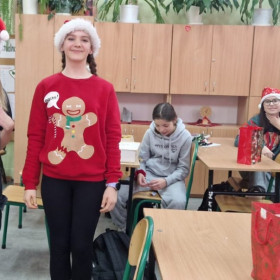 Klasa 7 a już dzień przed mikołajkami wybrała się do teatru na spektakl Opowieści z Narni, a kolejnego dnia Mikołaj obdarował każdego upominkiem, wśród których były kosmetyki, książki, drobne podarunki i oczywiście dużo słodyczy! :)