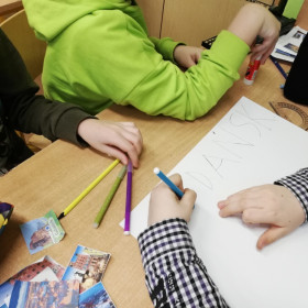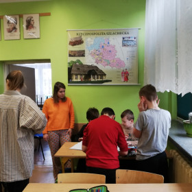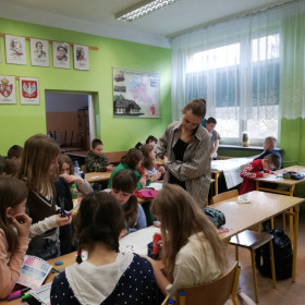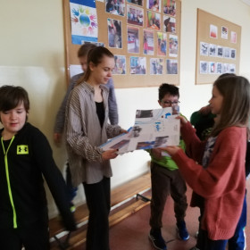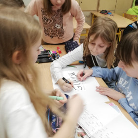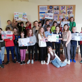 Klasa IV b w ramach projektu klasowego z języka angielskiego Greetings from Poland, przygotowała olbrzymie pocztówki z miast polskich. Pocztówki zawierały informacje i ilustracje najbardziej charakterystycznych budowli i miejsc w Warszawie, Krakowie, Poznaniu, Gdańsku czy Kielcach. W przygotowaniu prac uczestniczyły nasze wolontariuszki Lynn z Niemiec i Ester z Hiszpanii. To dla nich czwartoklasiści przygotowali te prace, aby pokazać piękno polskich miast i zachęcić do ich odwiedzenia.