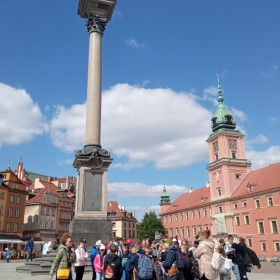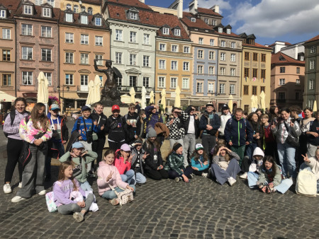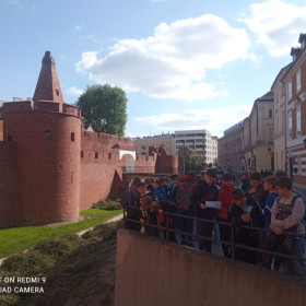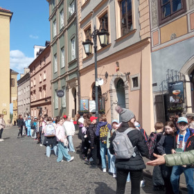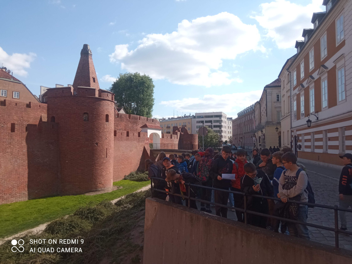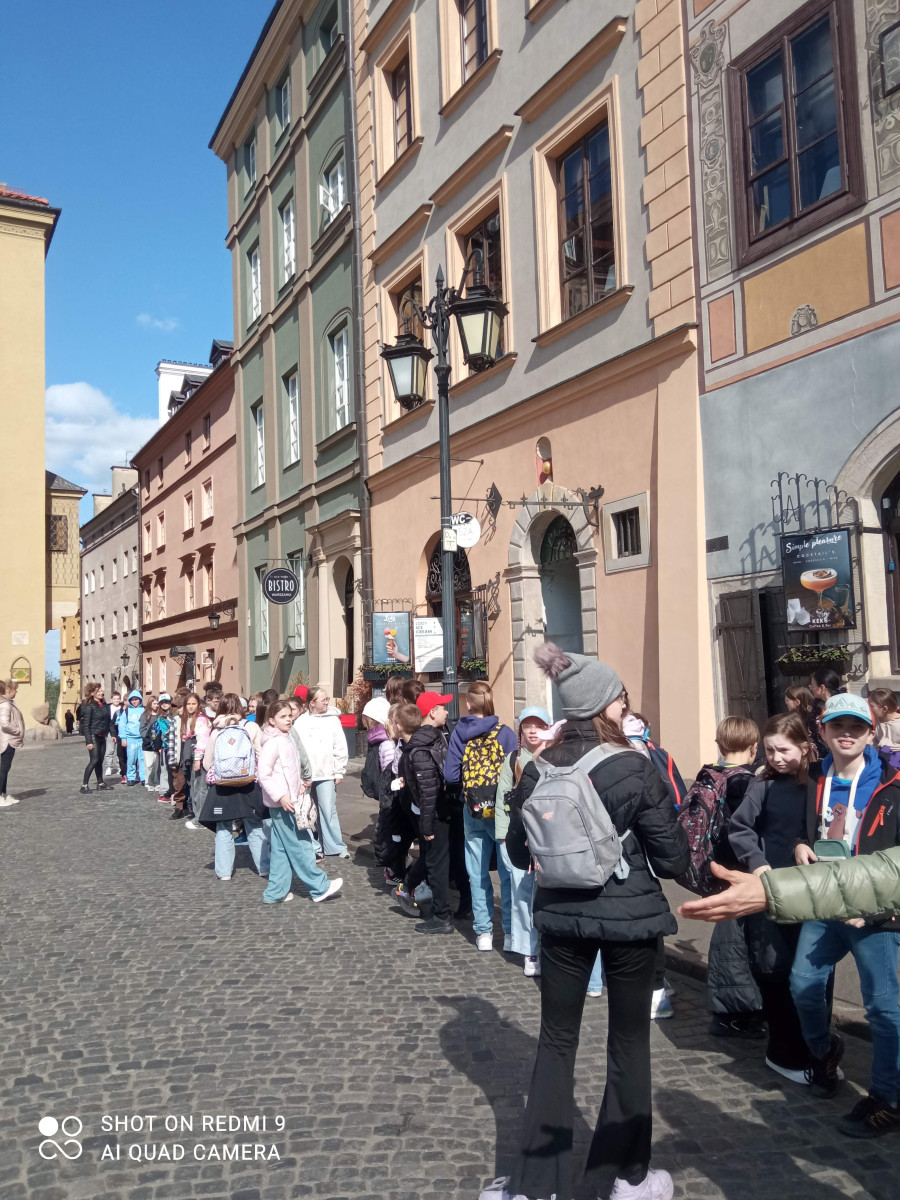 Po wizycie w CNK uczniowie pod opieką przewodniczki zwiedzali Stare Miasto, poznając historię Warszawy i jej zabytki.