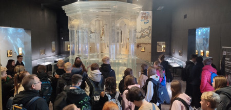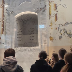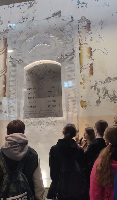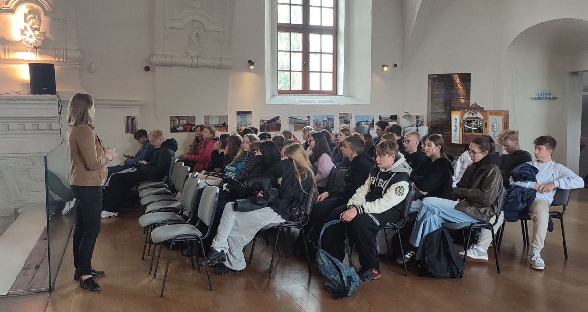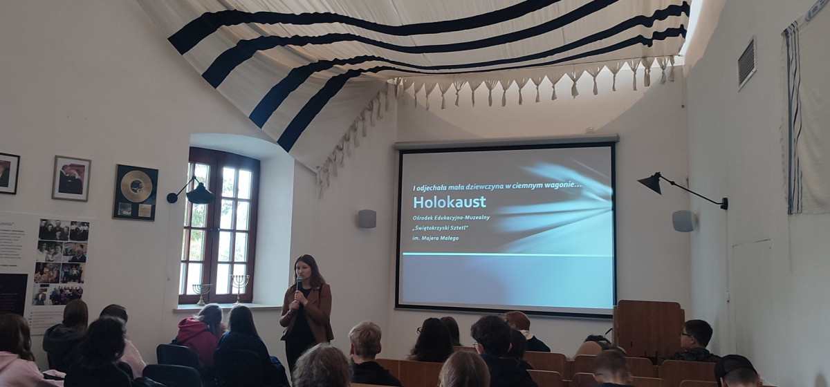 1 października 2025 r. klasy ósme pojechały na wycieczkę do Chmielnika w ramach projektu „Świętokrzyski Kalejdoskop Dziedzictwa – aktywna edukacja kulturalna”. Projekt został zrealizowany we współpracy z Fundacją Edu Stem i sfinansowany ze środków budżetu państwa, przyznanych przez Ministra Edukacji Narodowej w ramach programu „Nasze tradycje”. Ósmoklasiści zwiedzili w Chmielniku Świętokrzyski Sztetl – muzeum, które powstało w dawnym budynku synagogi wybudowanej przez żydowską społeczność miasta w XVIII wieku. Podczas oglądania zbiorów muzealnych, a także dzięki uczestniczeniu w warsztatach uczniowie poznali specyfikę i sposób życia mieszkańców sztetla, czyli miasteczka polsko-żydowskiego, jakie istniały we wschodniej Europie przed II wojną światową. Poznali również ważne fakty na temat Holokaustu i tragedii chmielnickich Żydów w czasie okupacji hitlerowskiej. Uczniowie mieli również możliwość wejścia do tzw. Dom Cienia – konstrukcji stalowej w formie sześcianu, upamiętniającej dawny cmentarz żydowski. Na ścianach tej budowli wypisane zostały wszystkie znane imiona i nazwiska przedwojennych żydowskich mieszkańców Chmielnika.